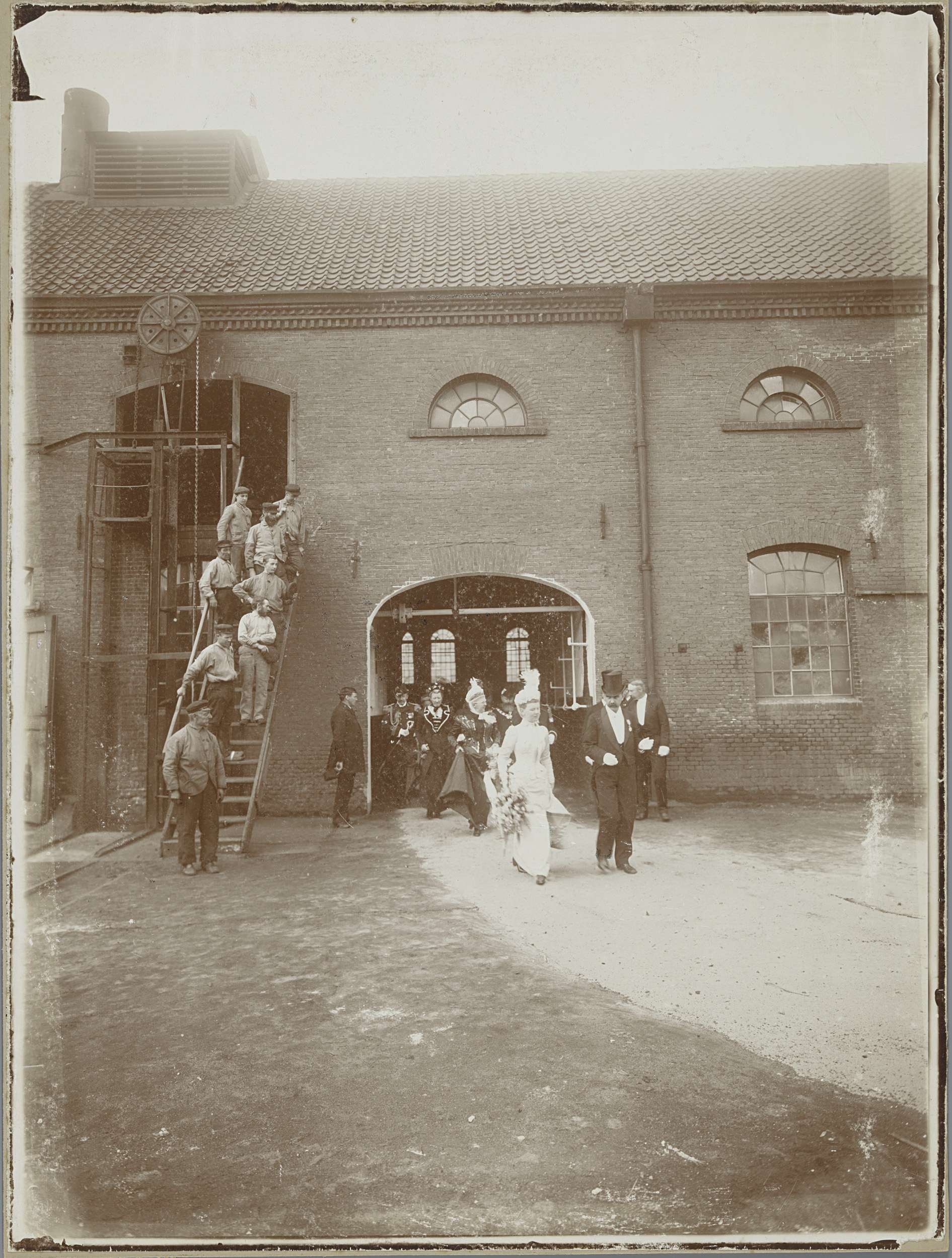 Koningin Wilhelmina en koningin-moeder Emma op fabri...