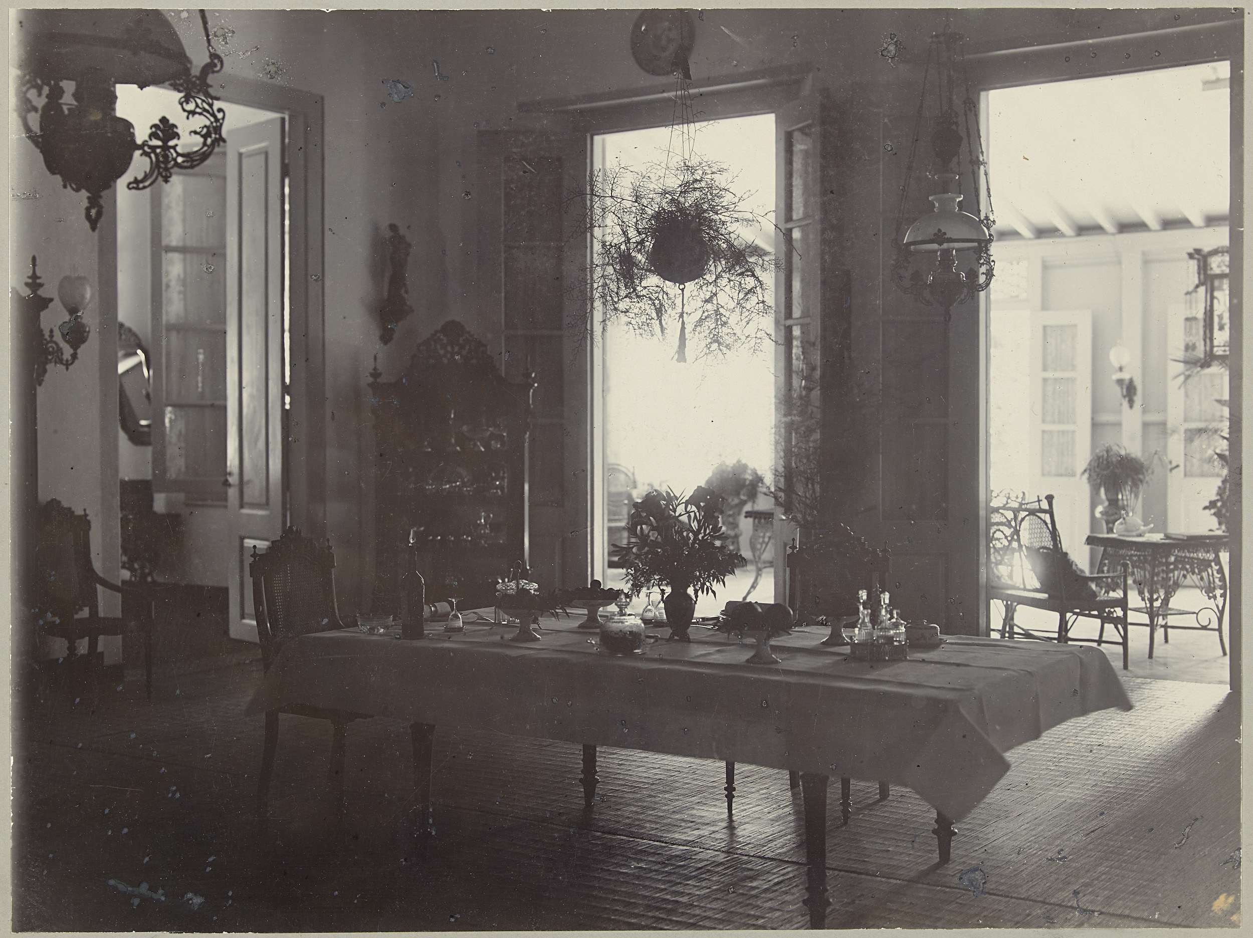 Interieur van een eetkamer in Nederlands-Indië