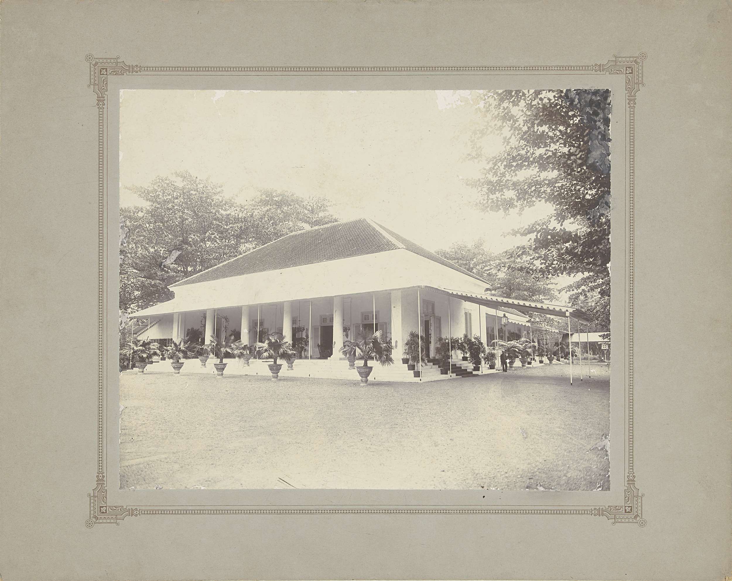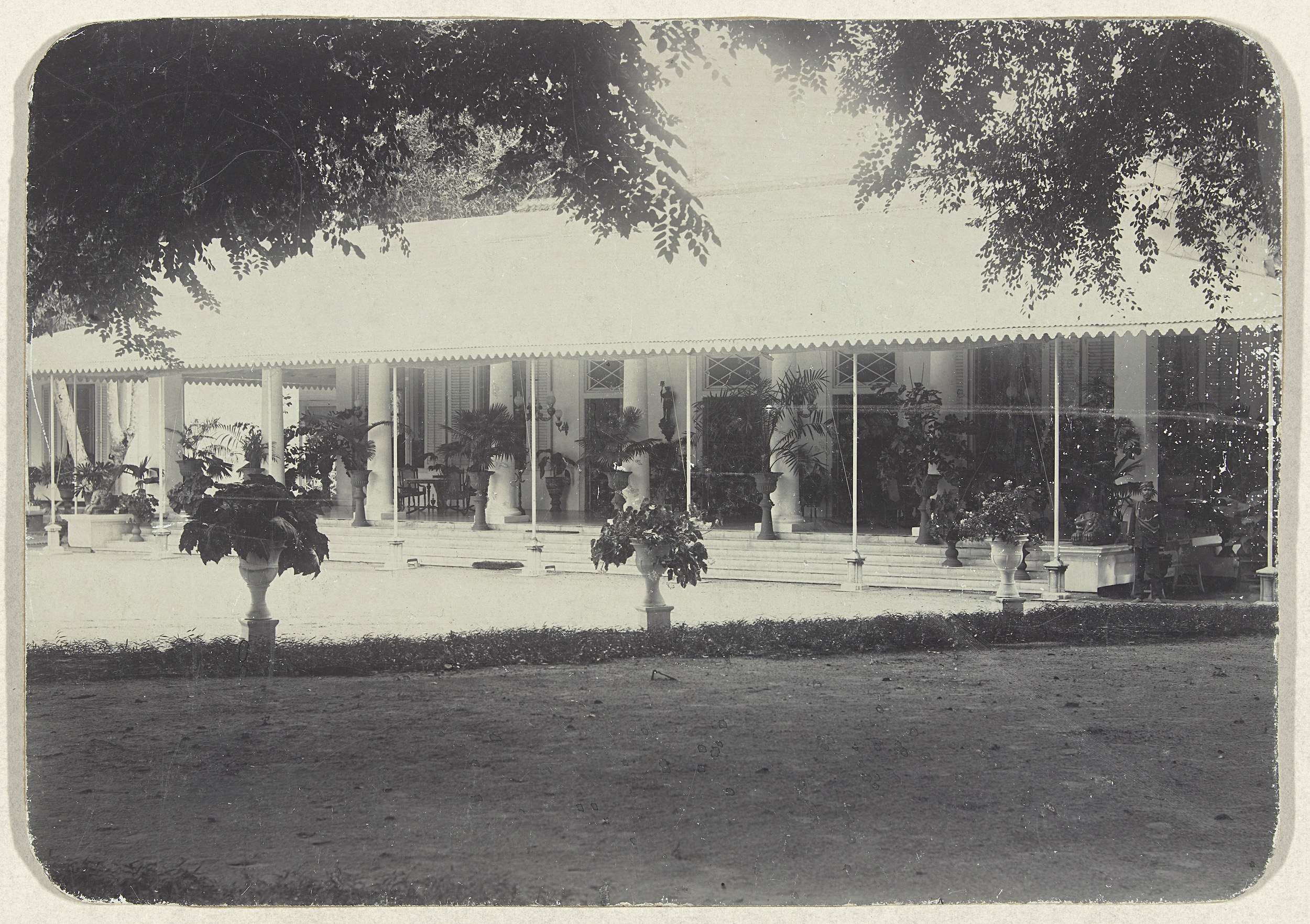 Tuin of park en pendopo in Nederlands-Indië