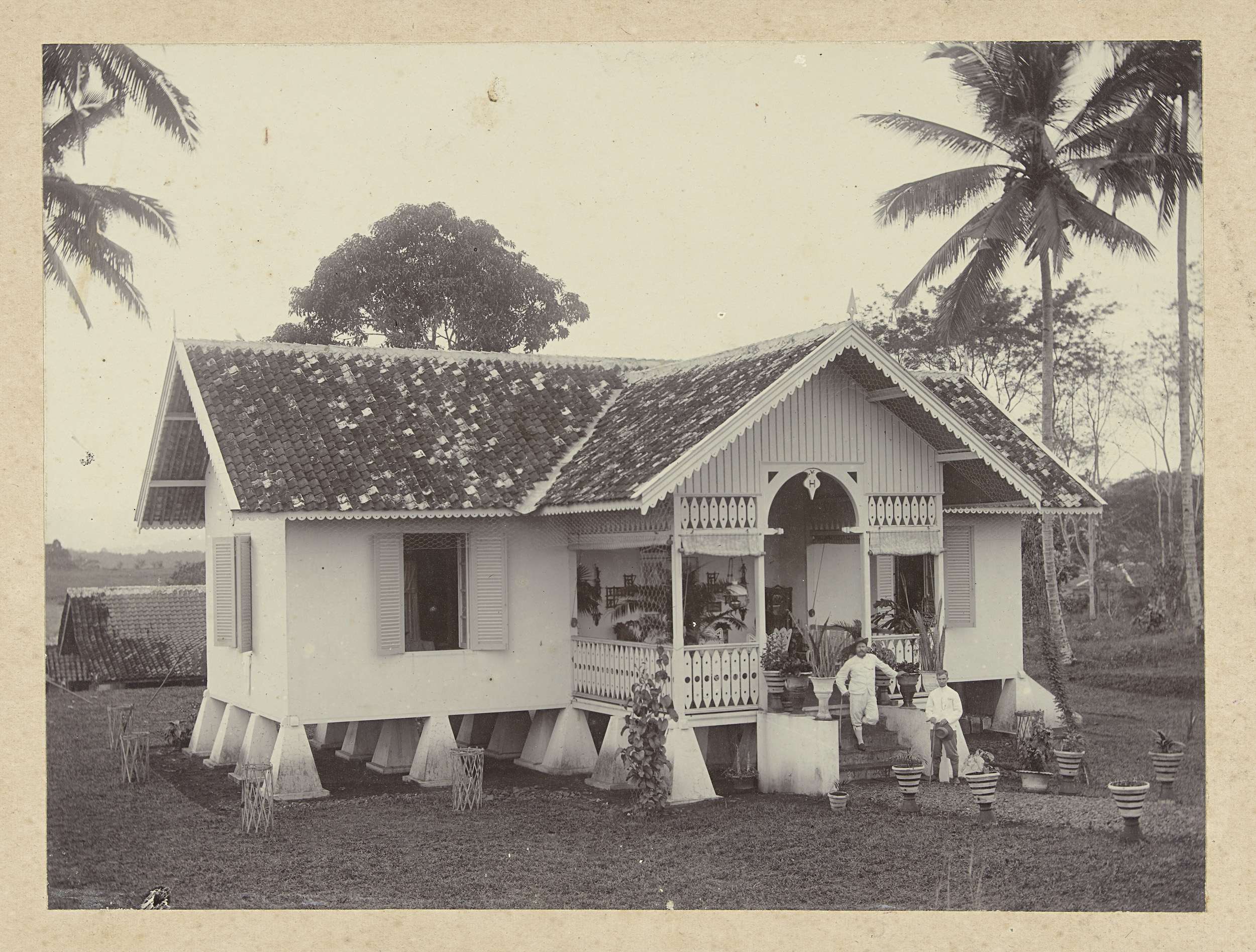 Villa met veranda en palmen in Nederlands-Indië