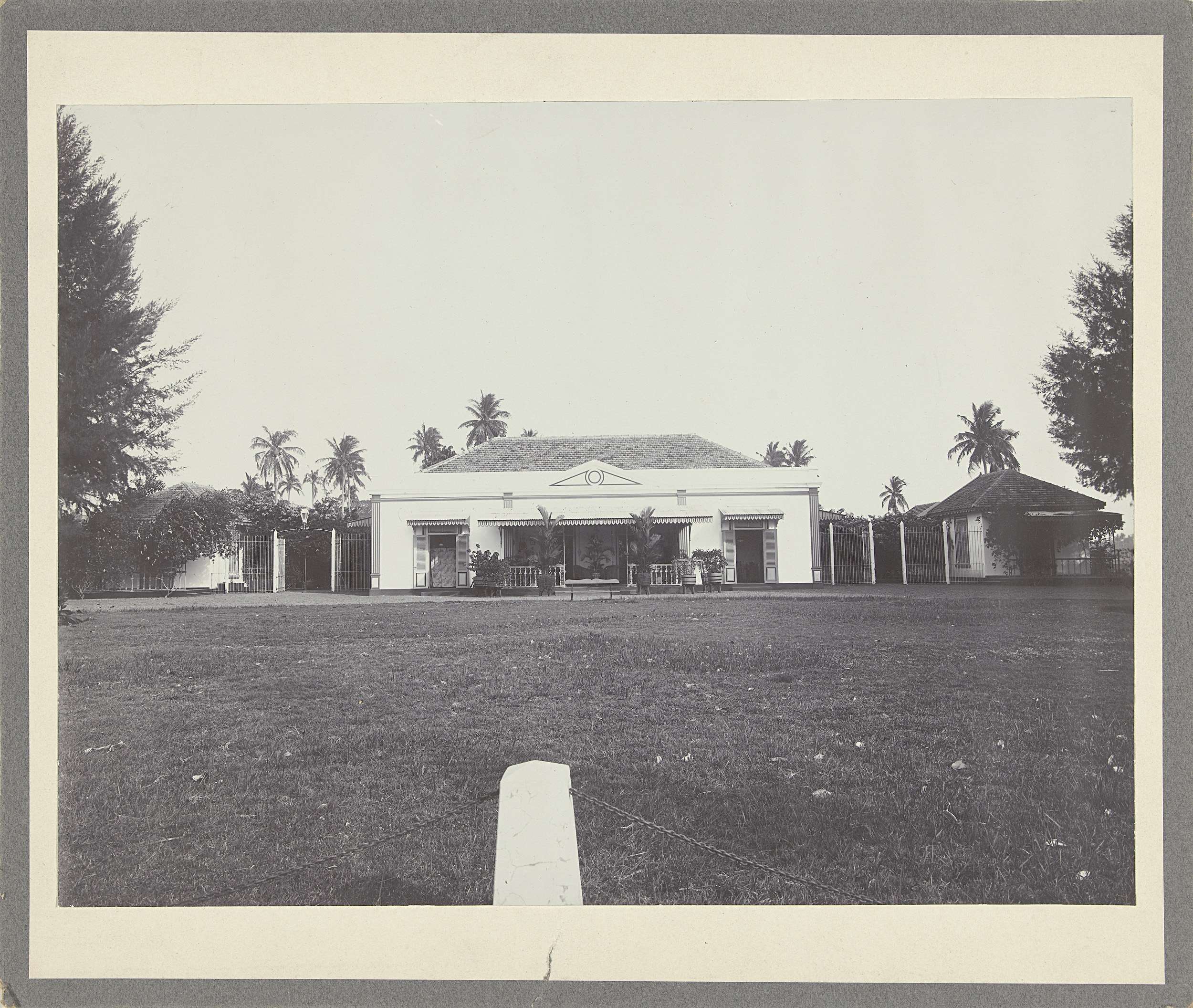 Huis met grasveld in Nederlands-Indië
