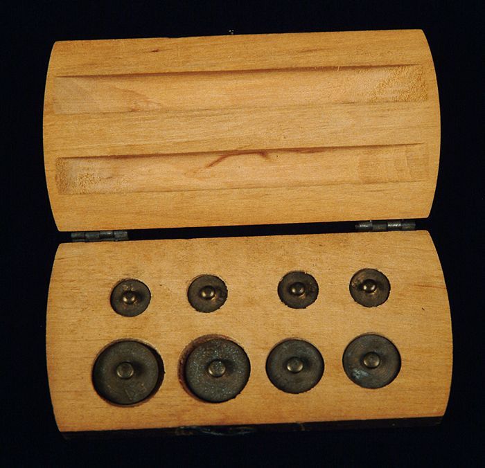 Speelgoedsetje met acht gewichtjes in houten doosje,...