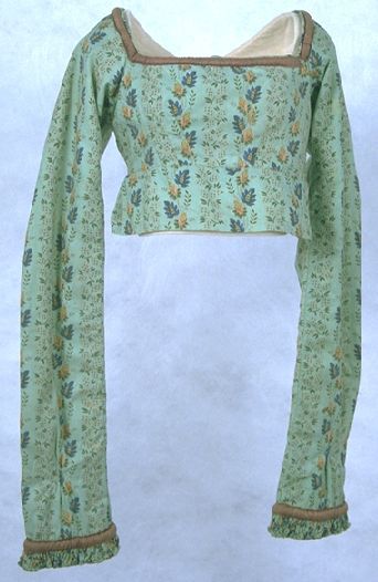Lichtgroene caraco met geschilderde bloem- en bladmo...