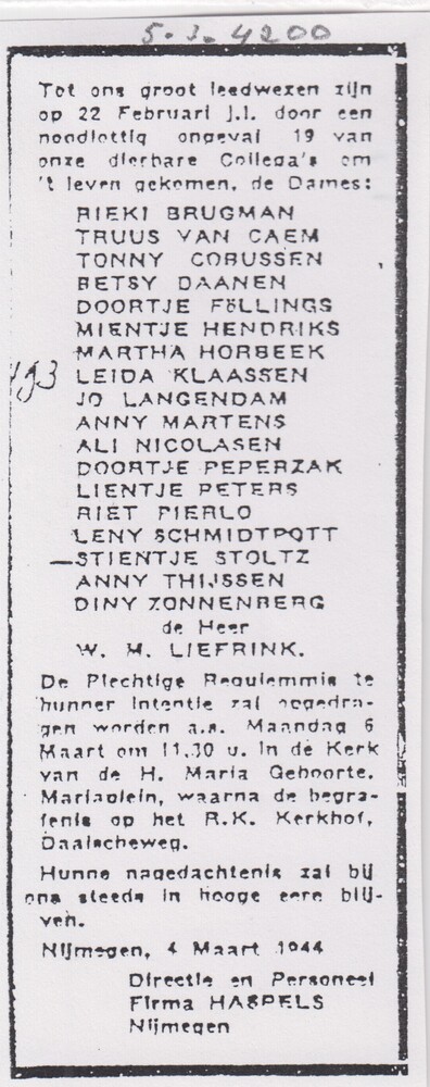 bidprentje zonder namen van de 19 slachtoffers van d...