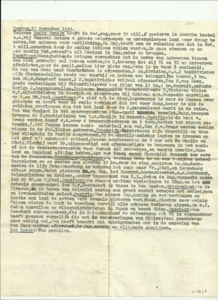 Uitgetypt verslag uitzending Radio Oranje, 12 novemb...