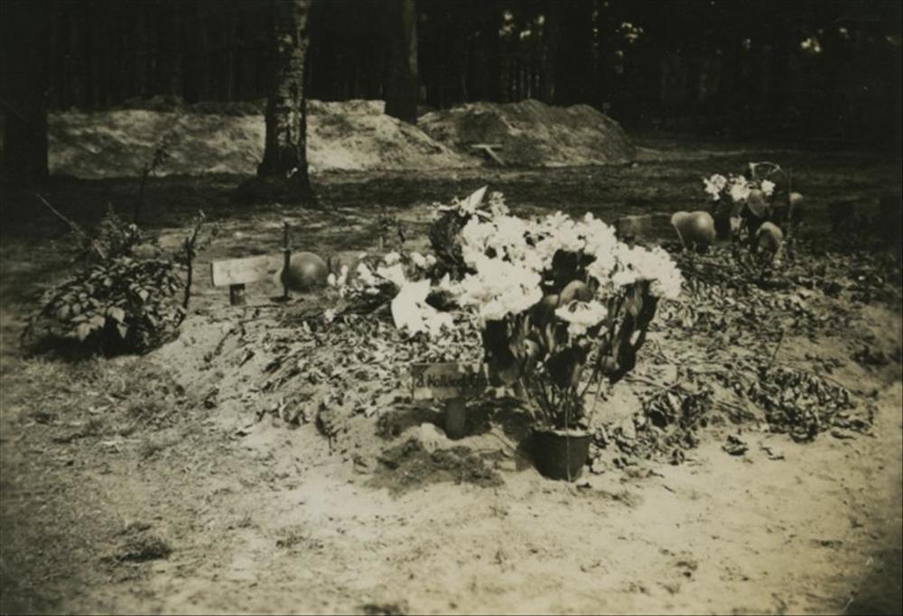 graven van Duitse militairen met bloemstukken en linten