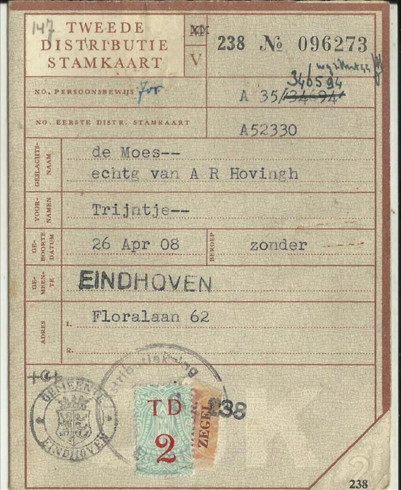 Tweede Distributiestamkaart van : De Moes, Trijntje