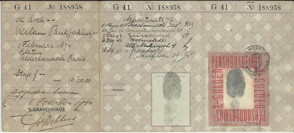 Persoonsbewijs op naam van De Kock Willem Paul .