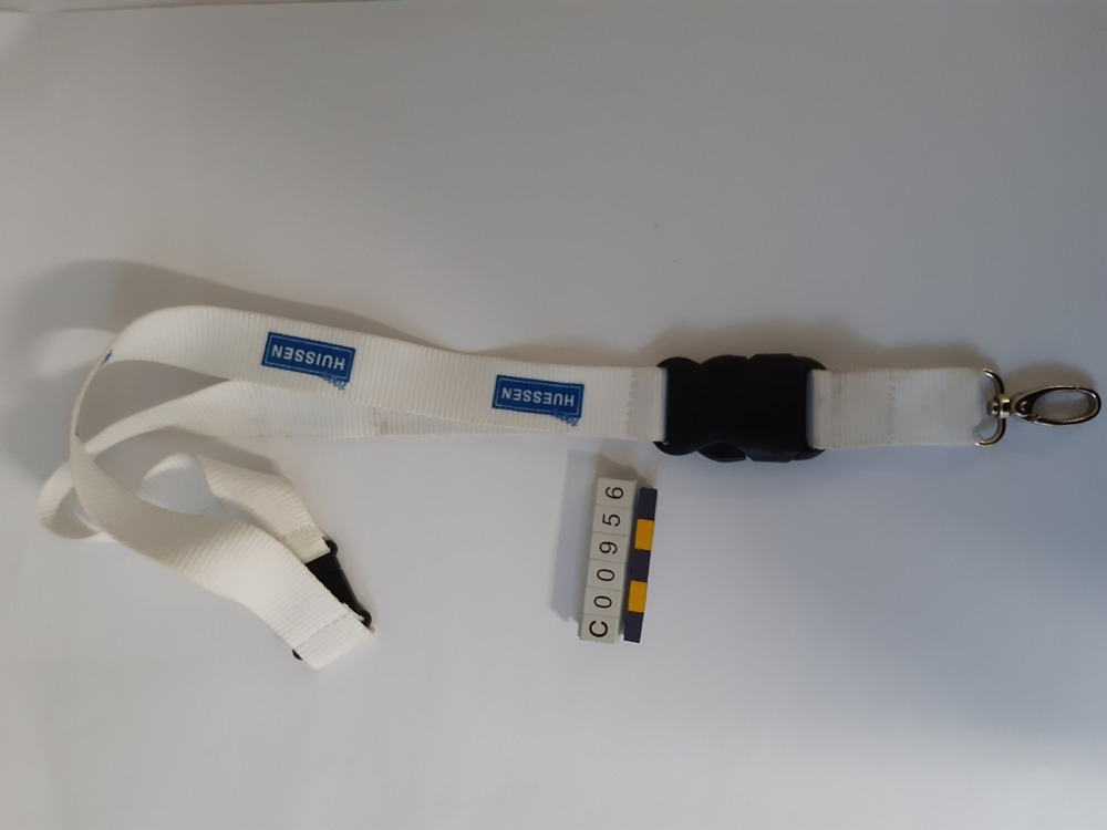 Keycord met wit cord met blauwe opdruk Huessen Huissen