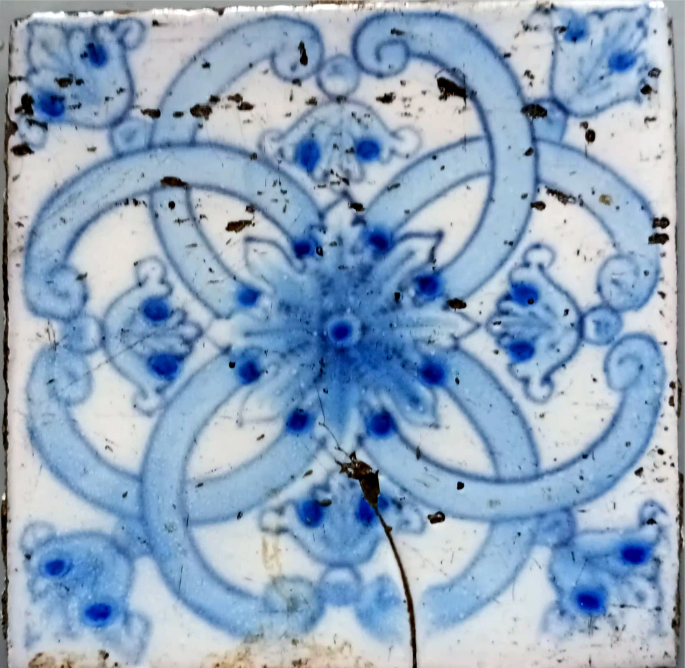 tegel van keramiek met tinglazuur, voorstellende: or...