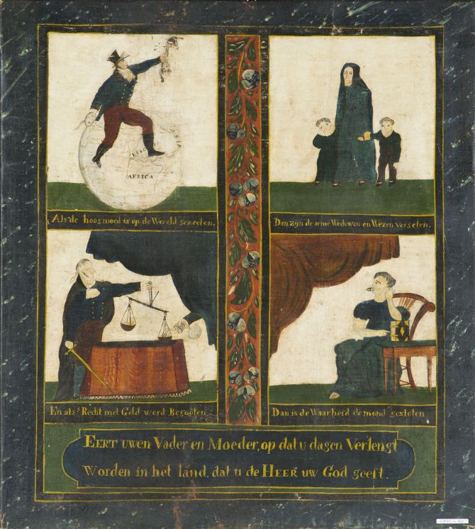 Allegorisch schilderij over de slechte invloed van geld