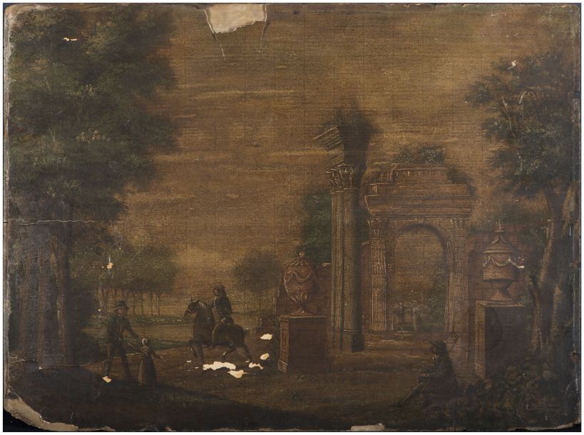 Landschap met klassieke poort met zuilen
