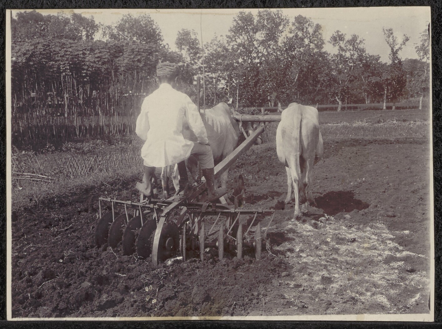 Het ploegen van een akker met een span runderen