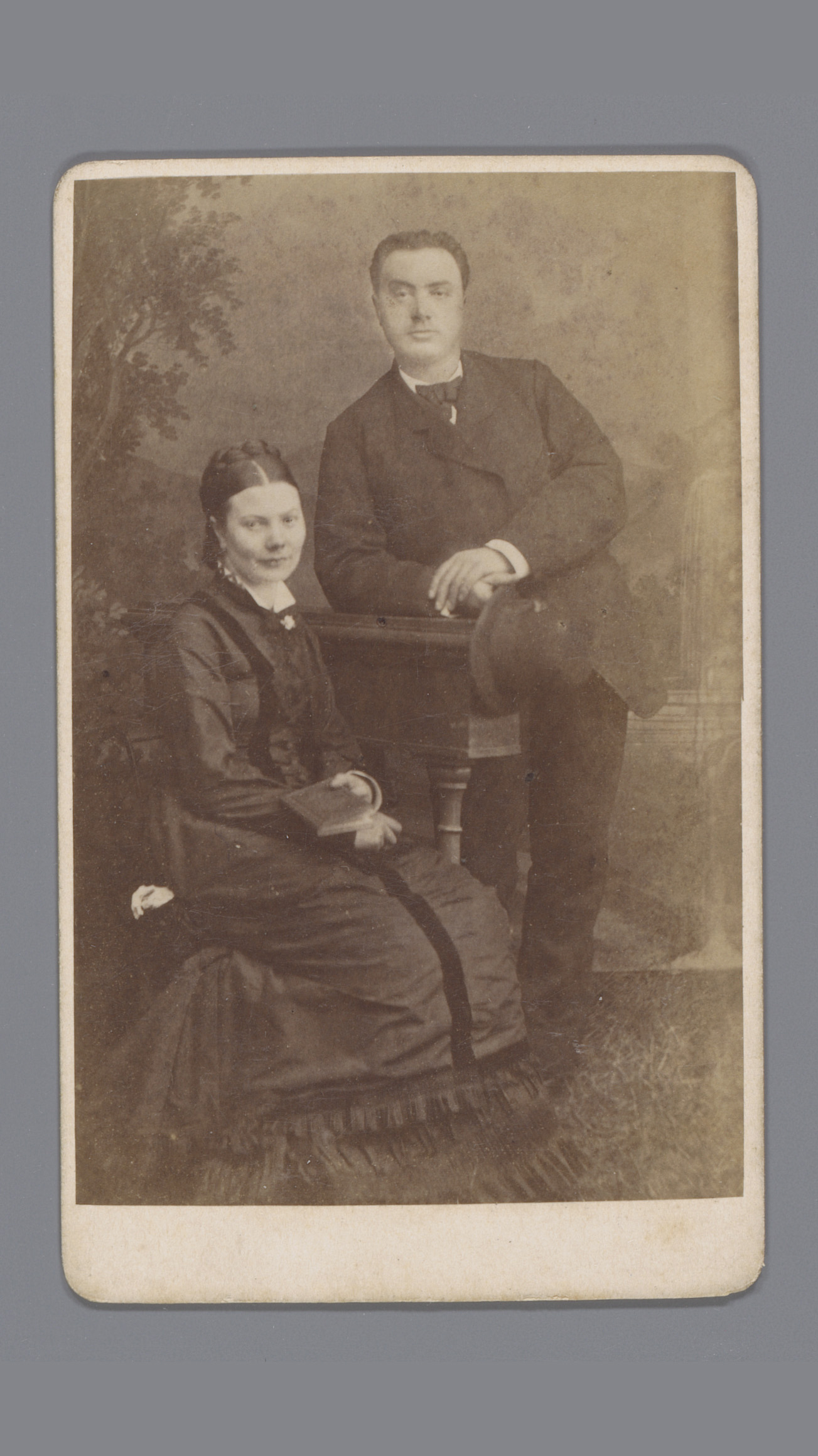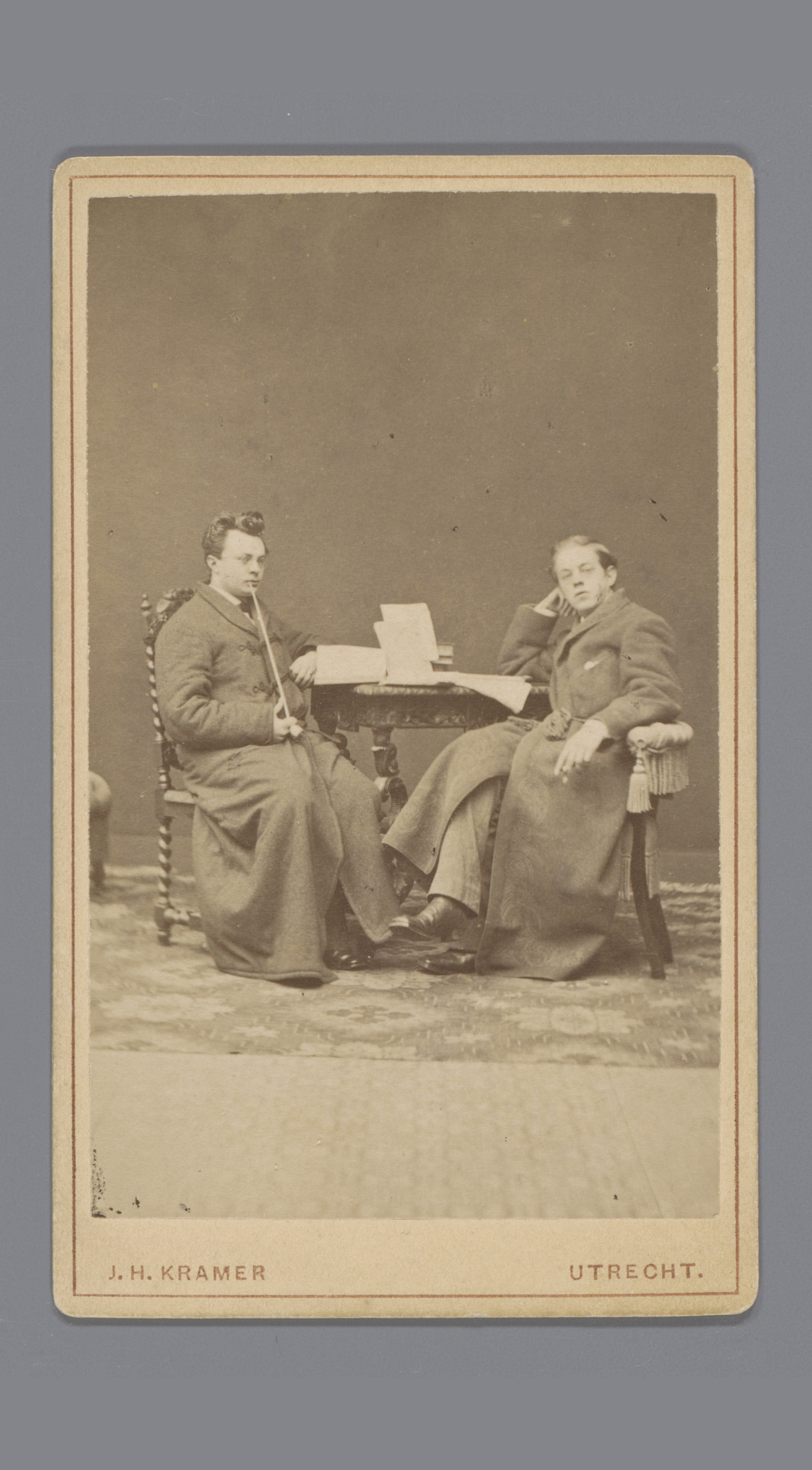 Portret van twee onbekende mannen aan tafel waarvan ...