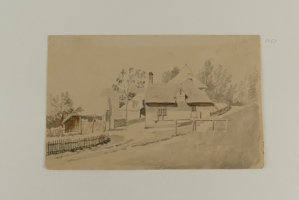Aqaurel, voorstellende een dijkwoning of boerderij, ...