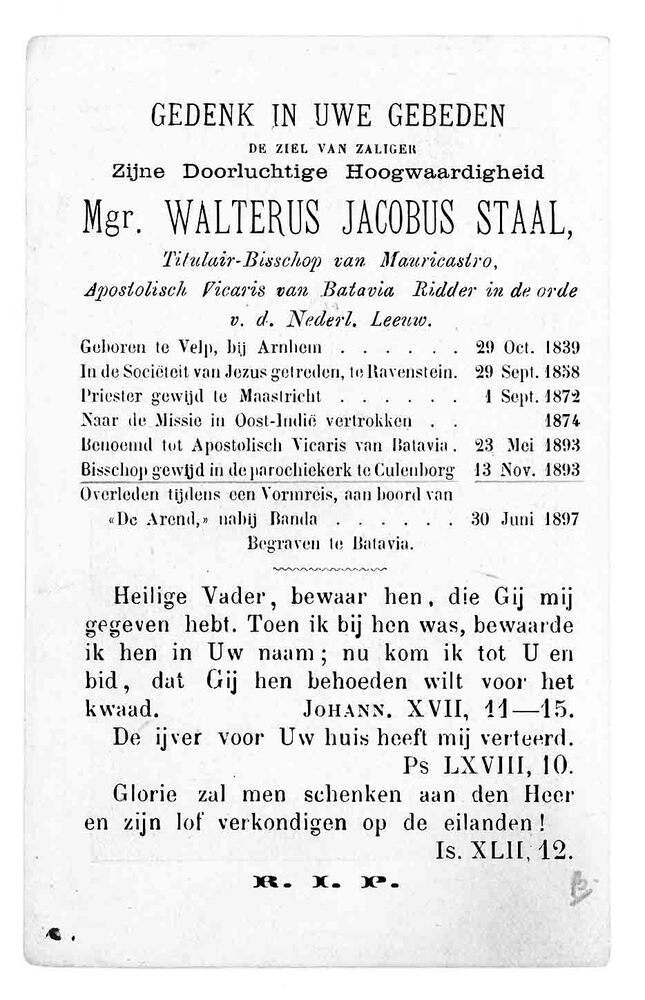 bidprent voor Walterus Jacobus Staal. Geboren 29-10-...
