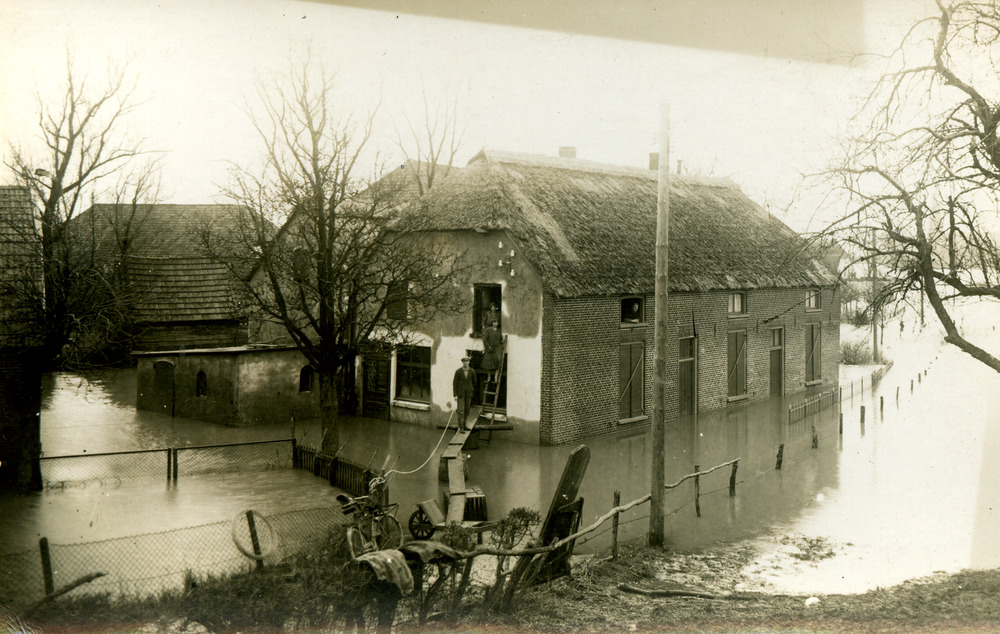 Zwart-wit foto van de grote dijkdoorbraak te Herwen ...