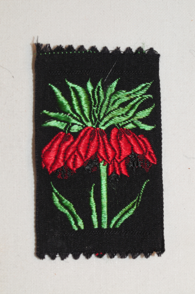 Zijdje van textiel met de voorstelling van een Stokr...