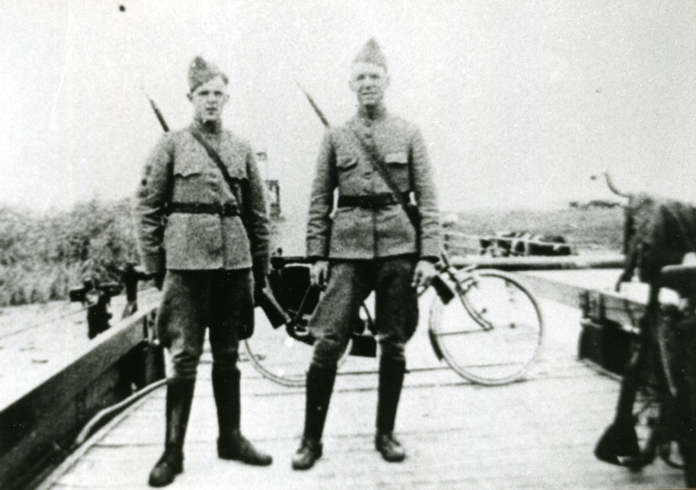 Zwart-wit foto van de voorbereiding van de mobilisat...