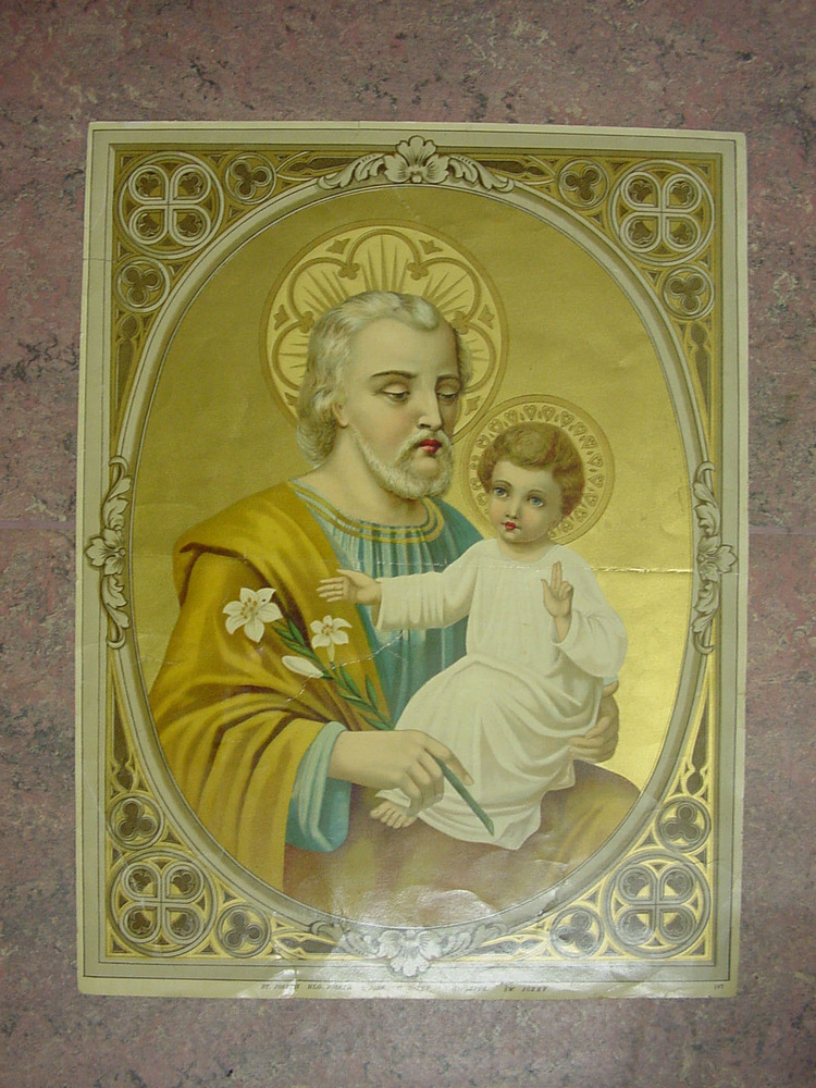 Kleurlitho met afbeelding van de Heilige Jozef met h...