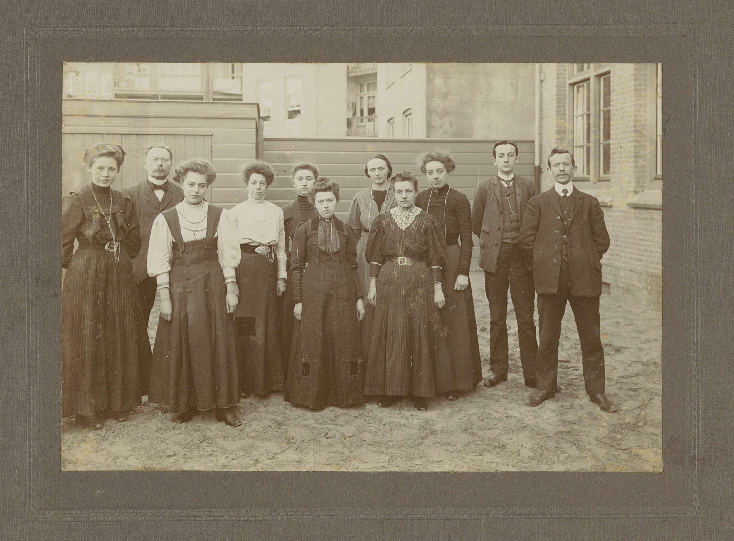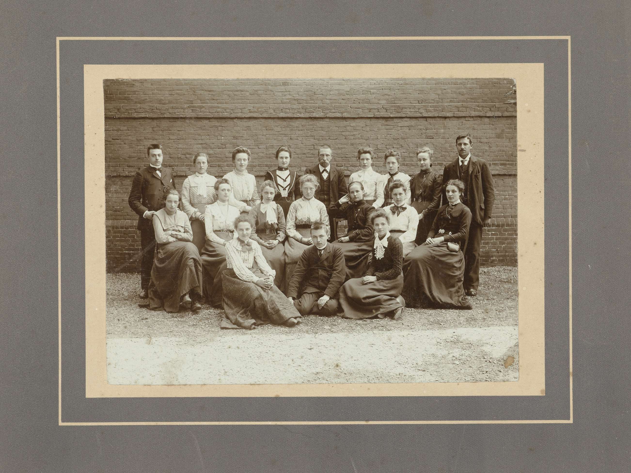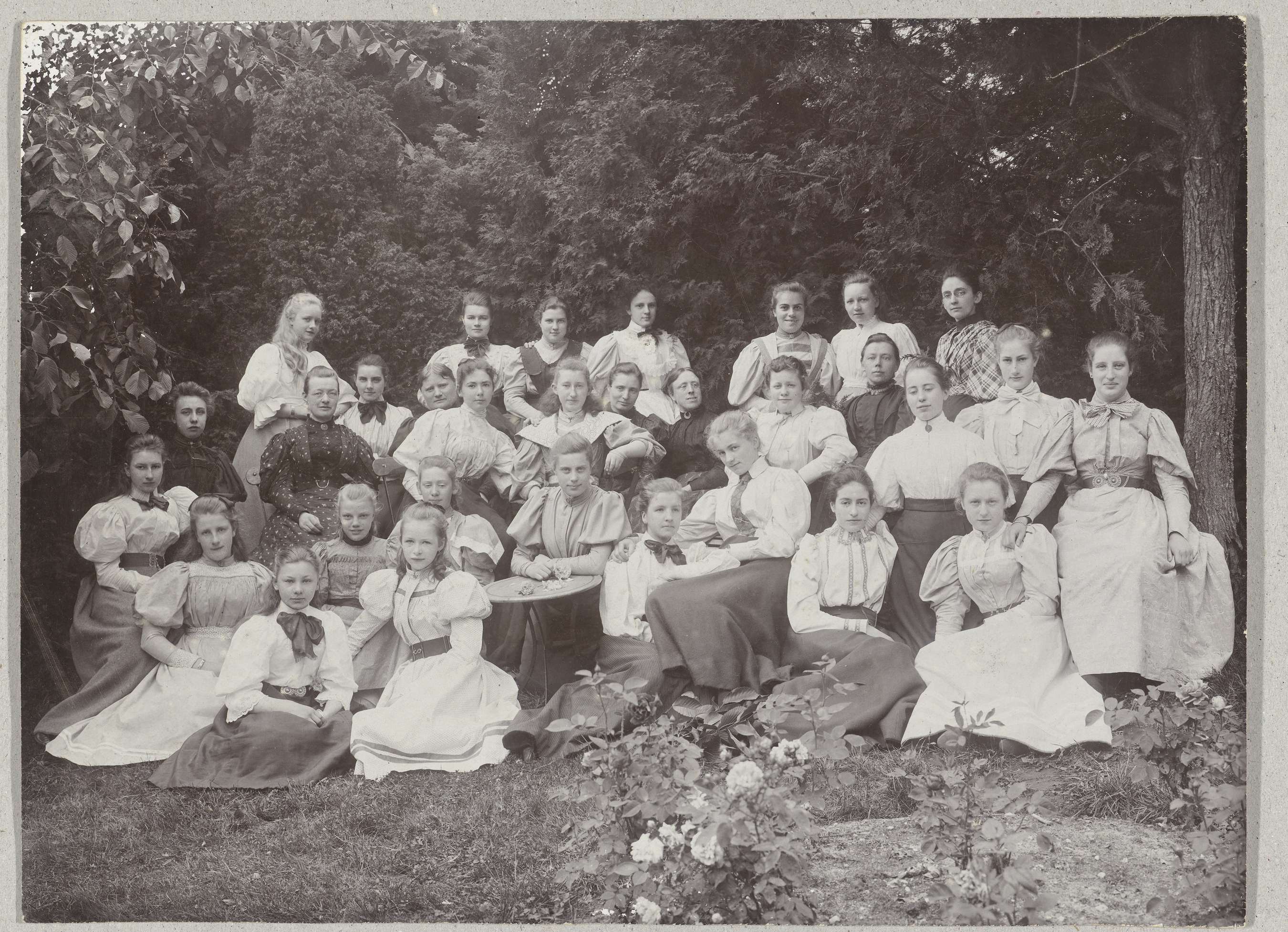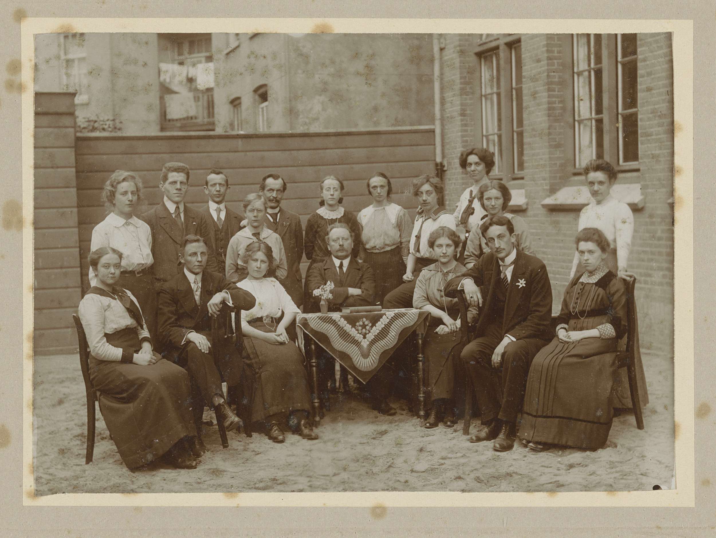 Groepsportret van onbekende jonge mannen en vrouwen ...