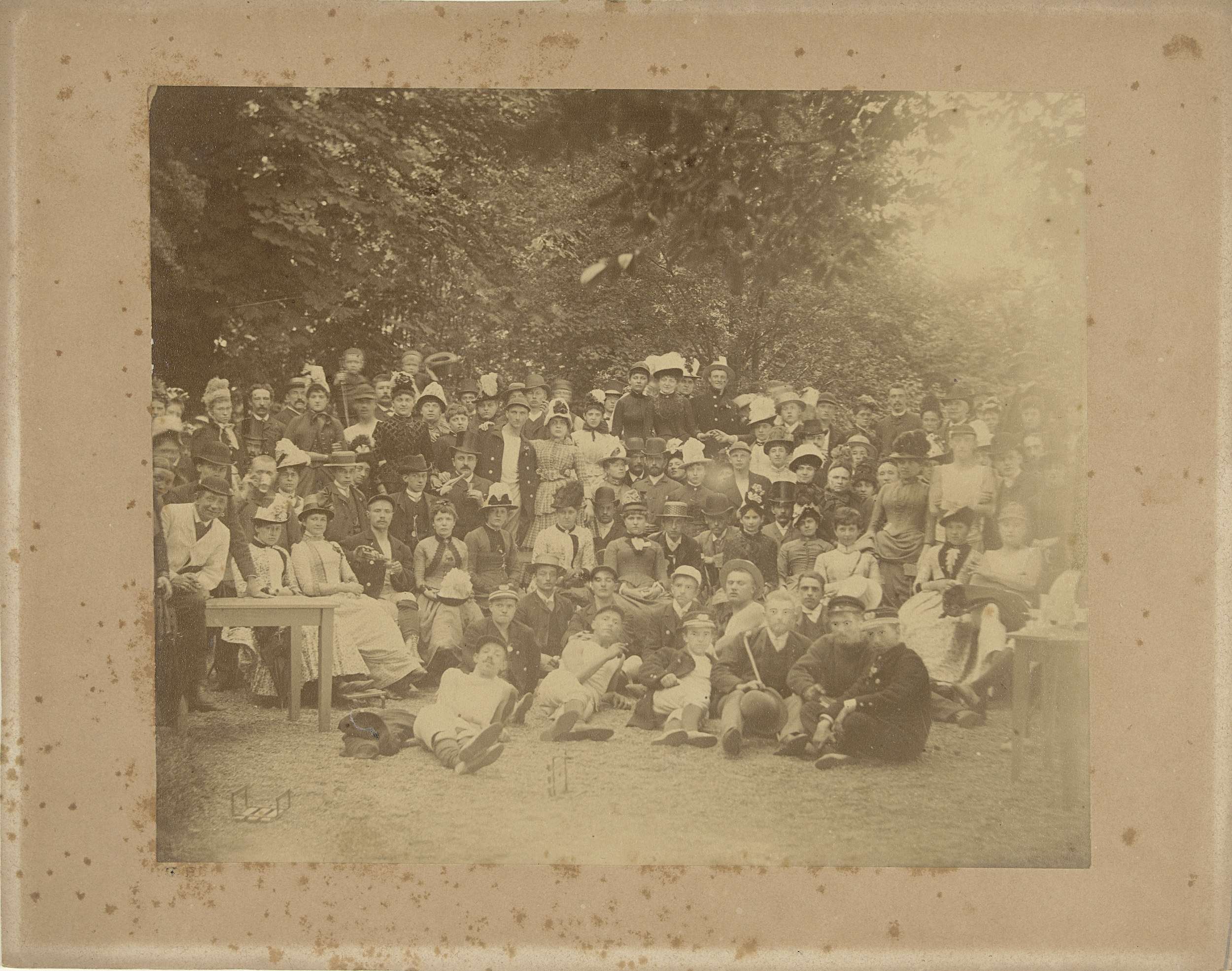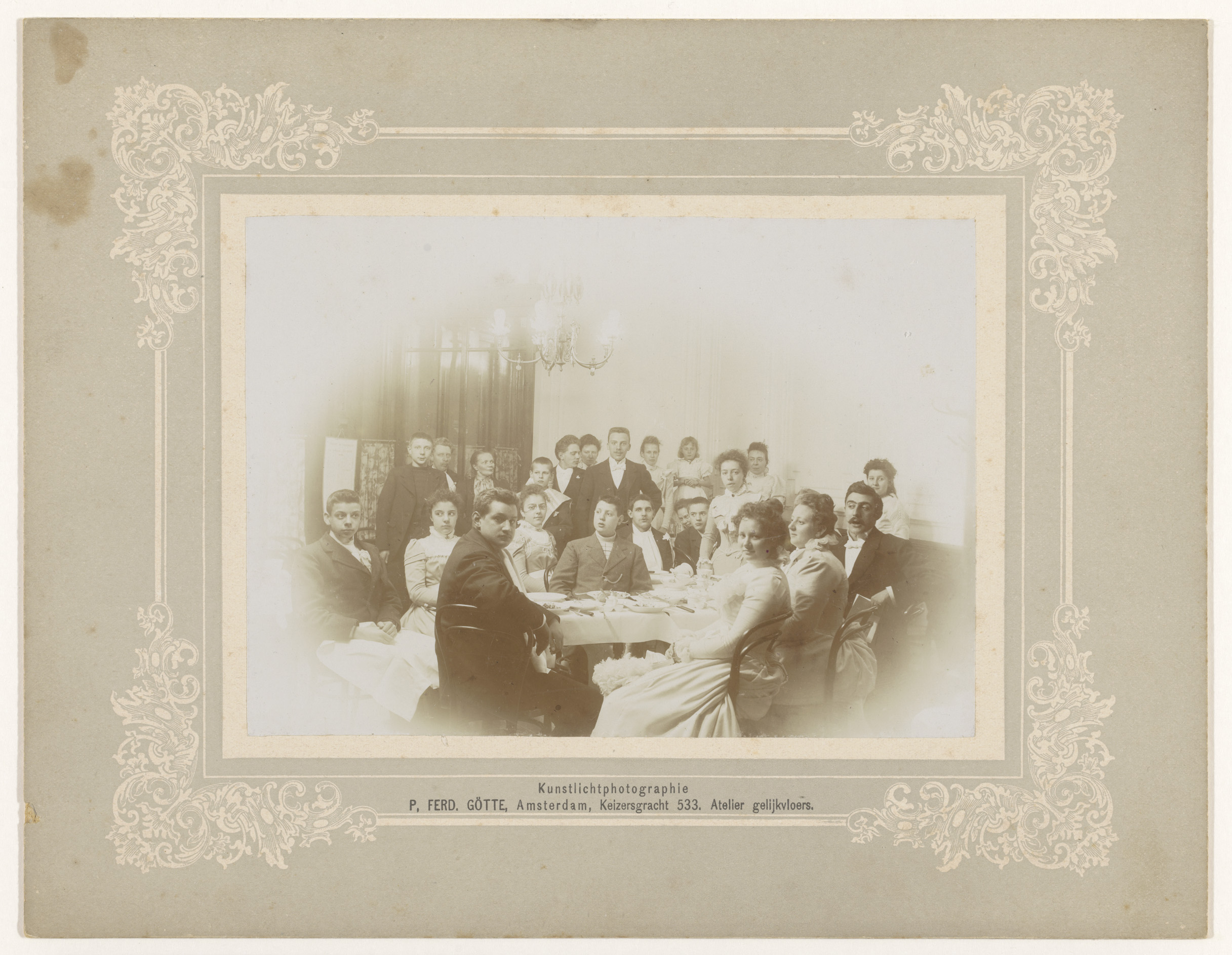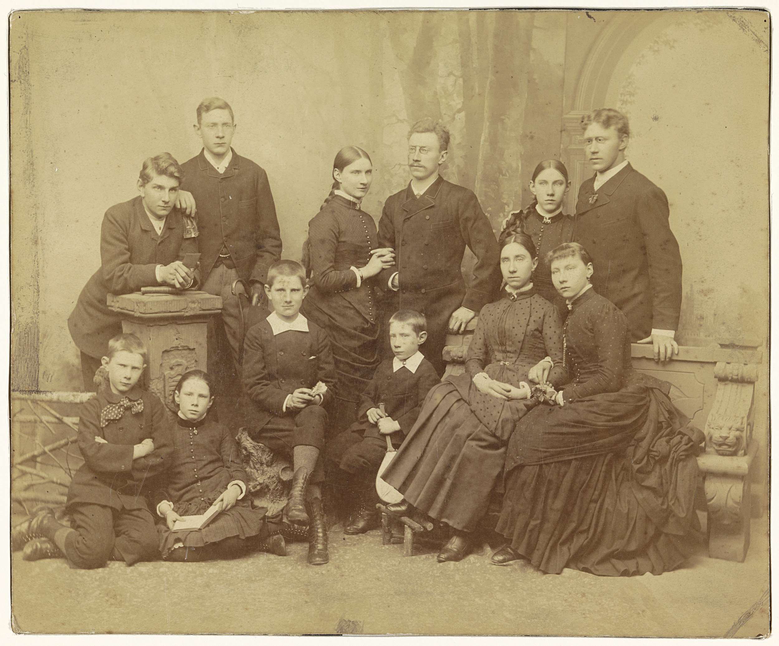 Groepsportret van onbekende jonge mannen en vrouwen ...