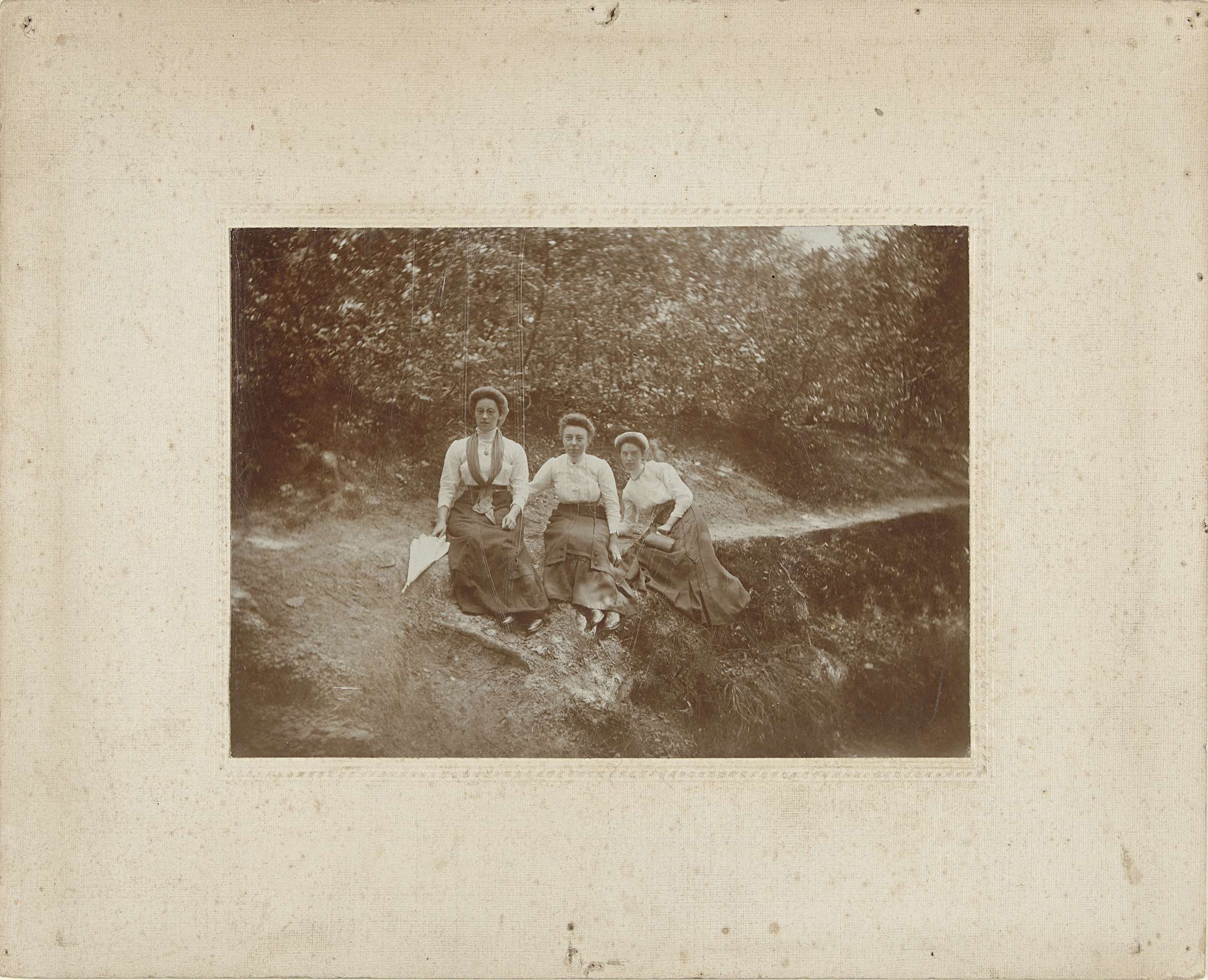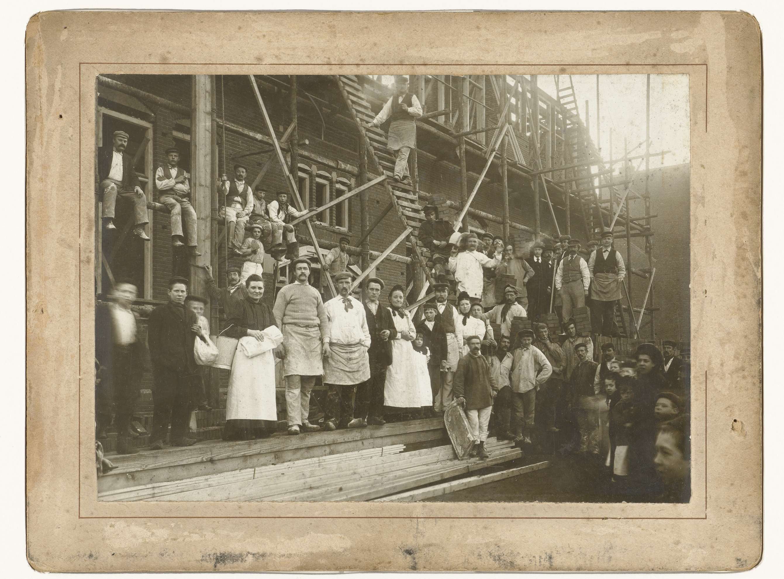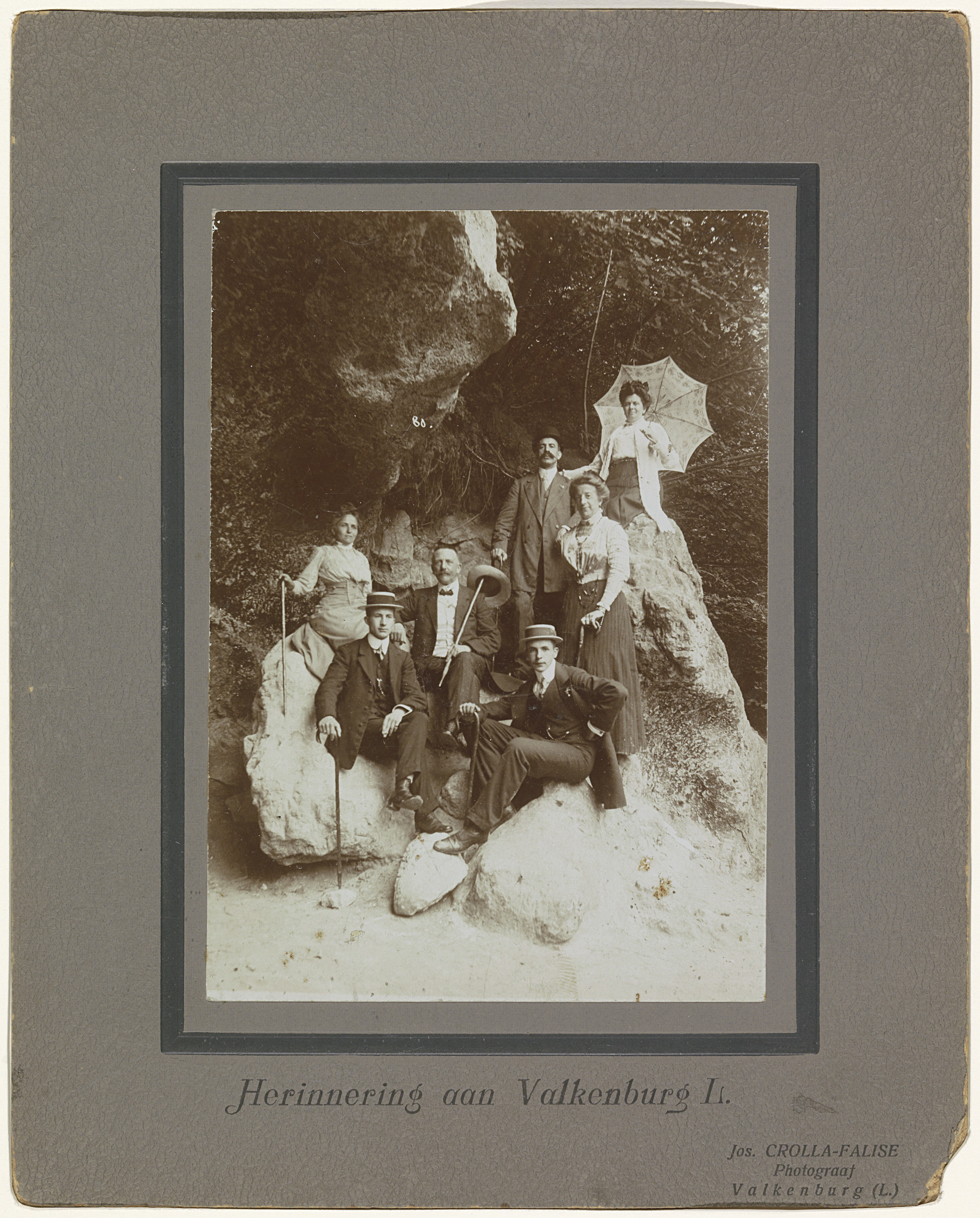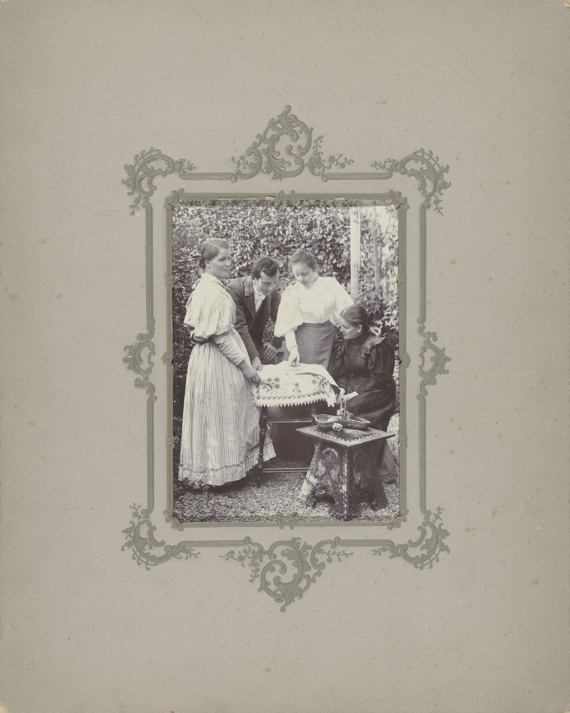 Groepsportret van onbekende jonge mannen en vrouwen ...