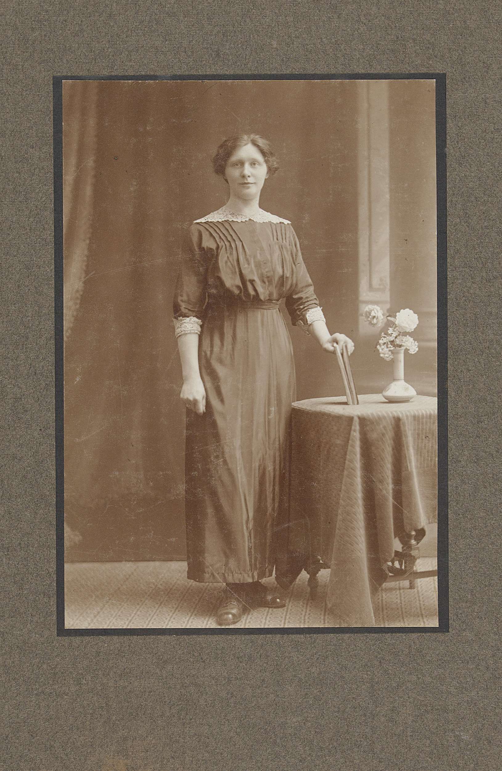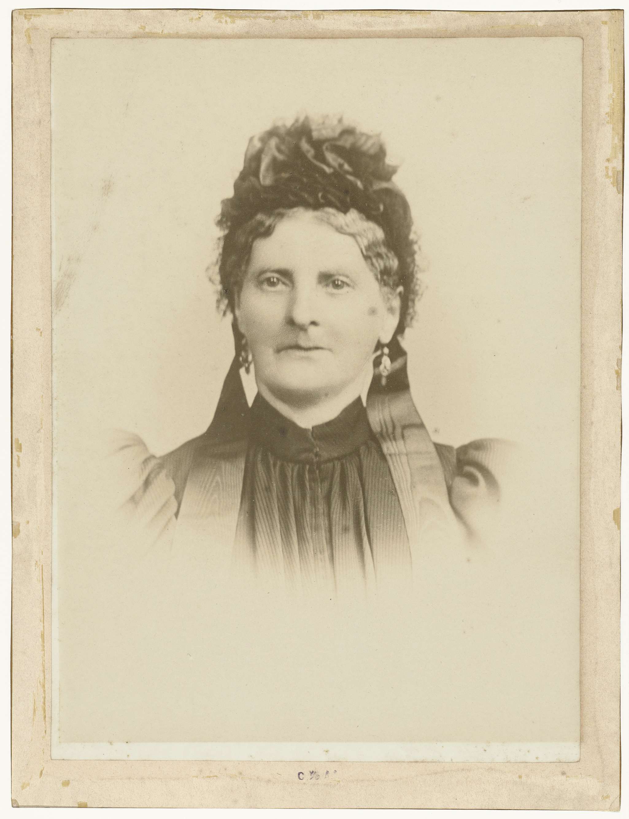 Portret vrouw Ds Piet Kwantes[onz] uit Beets, met mu...