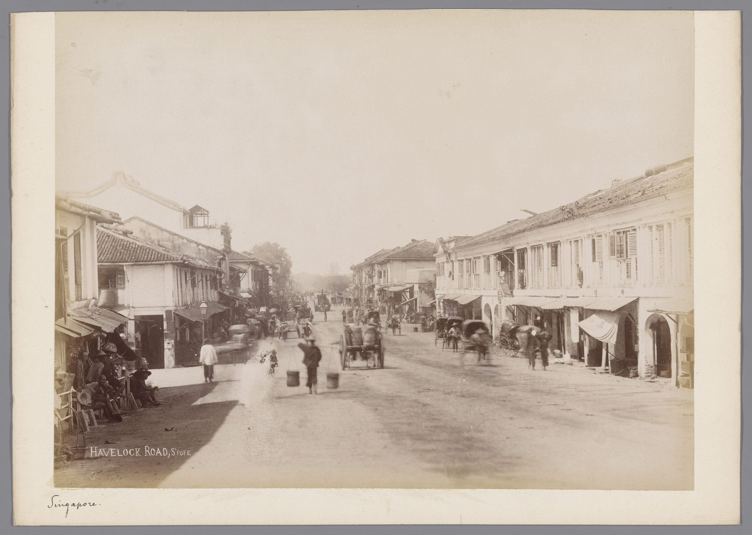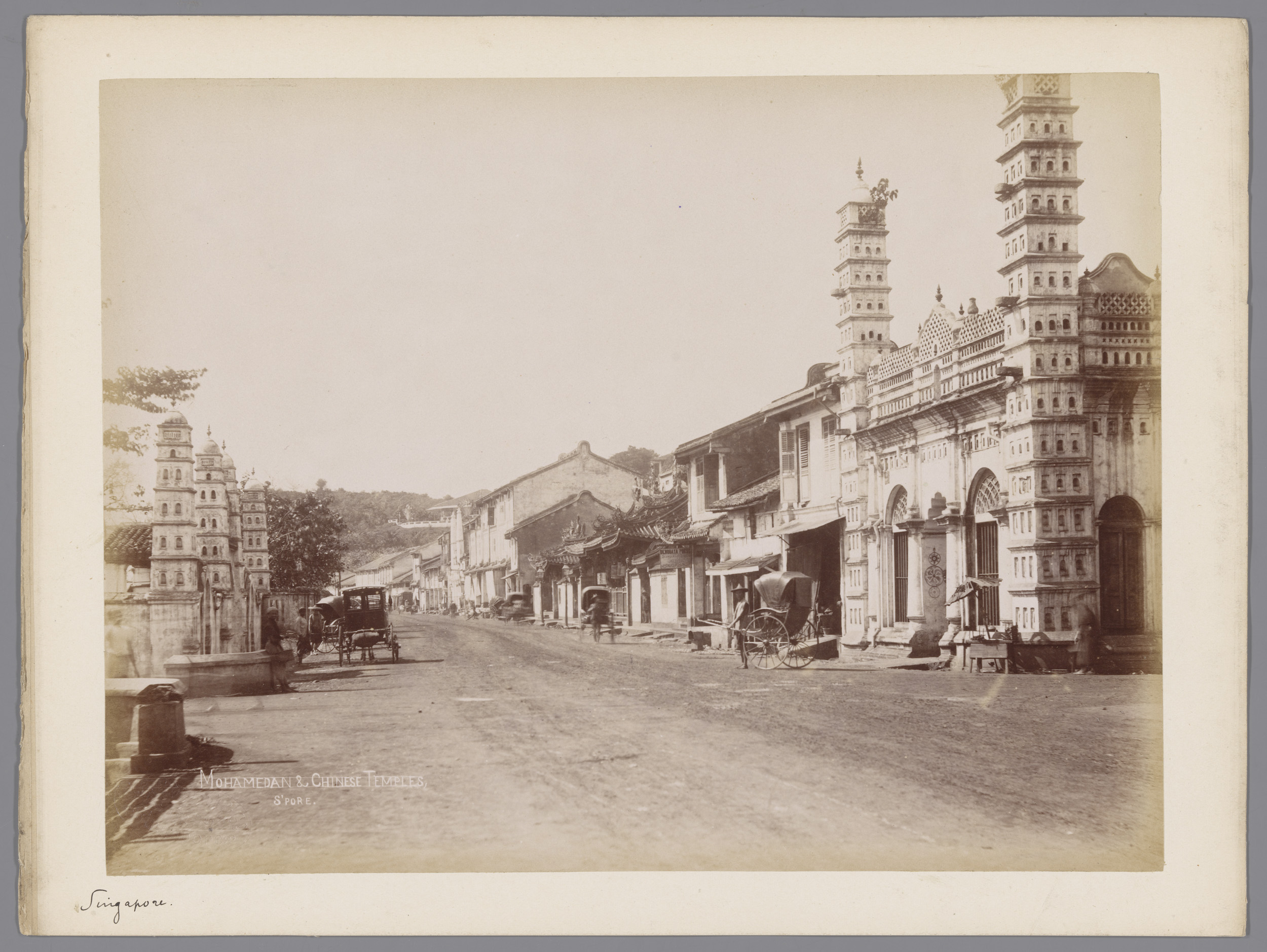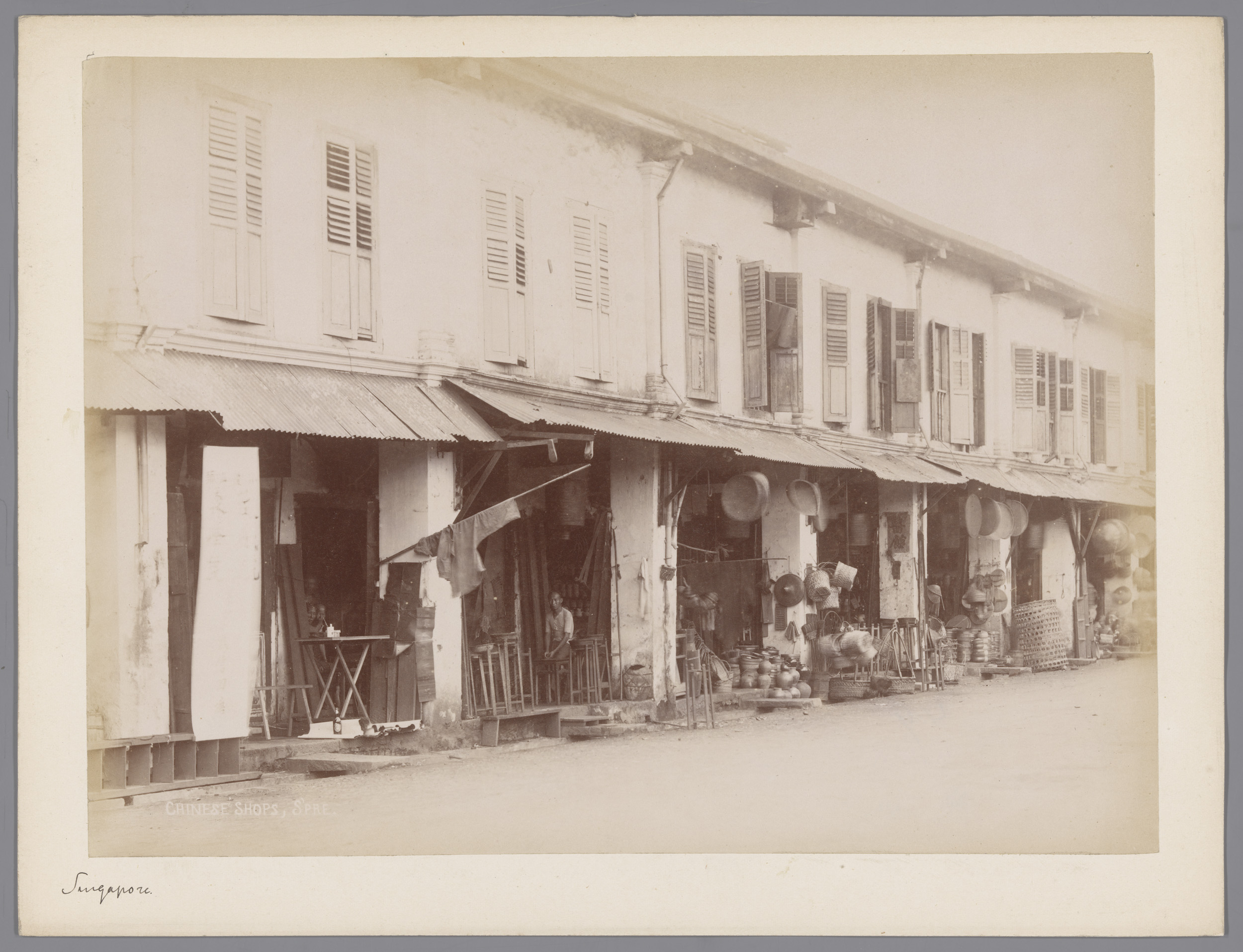 Gezicht op Johnsten's Pier aan Collyer Quay in Singa...