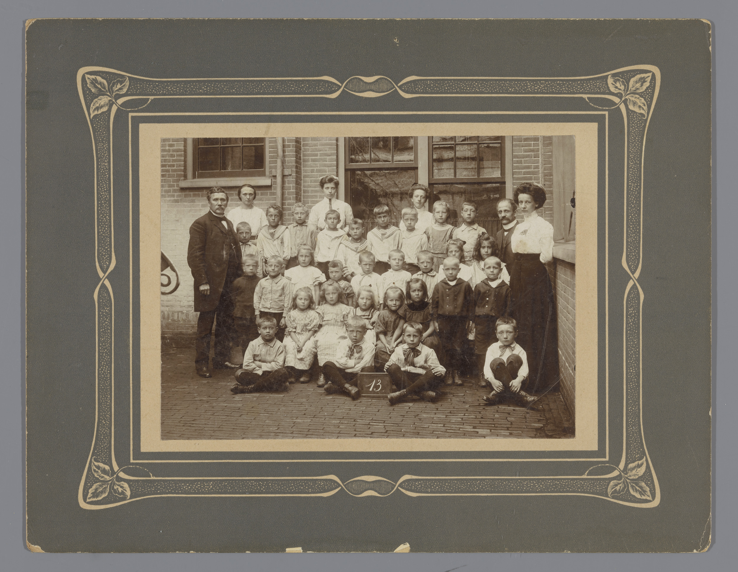 Groepsportret (klassefoto) van kinderen uit klas 13,...