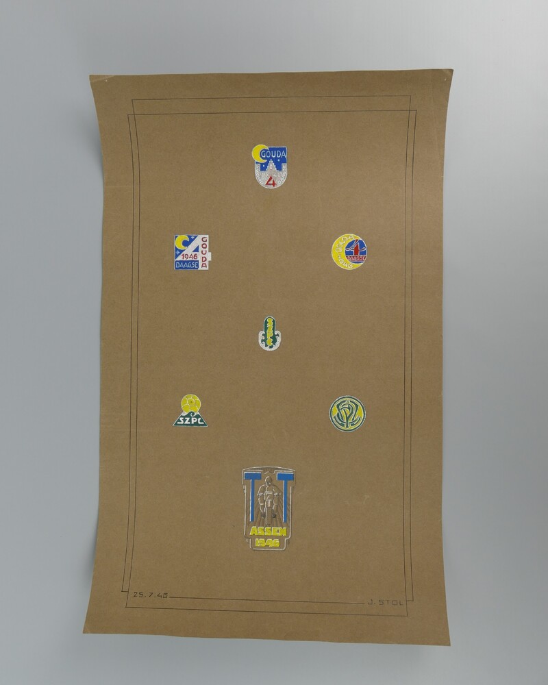 Tekeningen op bruin papier voorstellende ontwerpen d...
