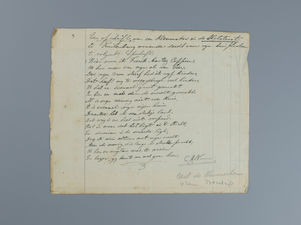 Gedicht, handschrift op papier, van kleermaker F.A. ...
