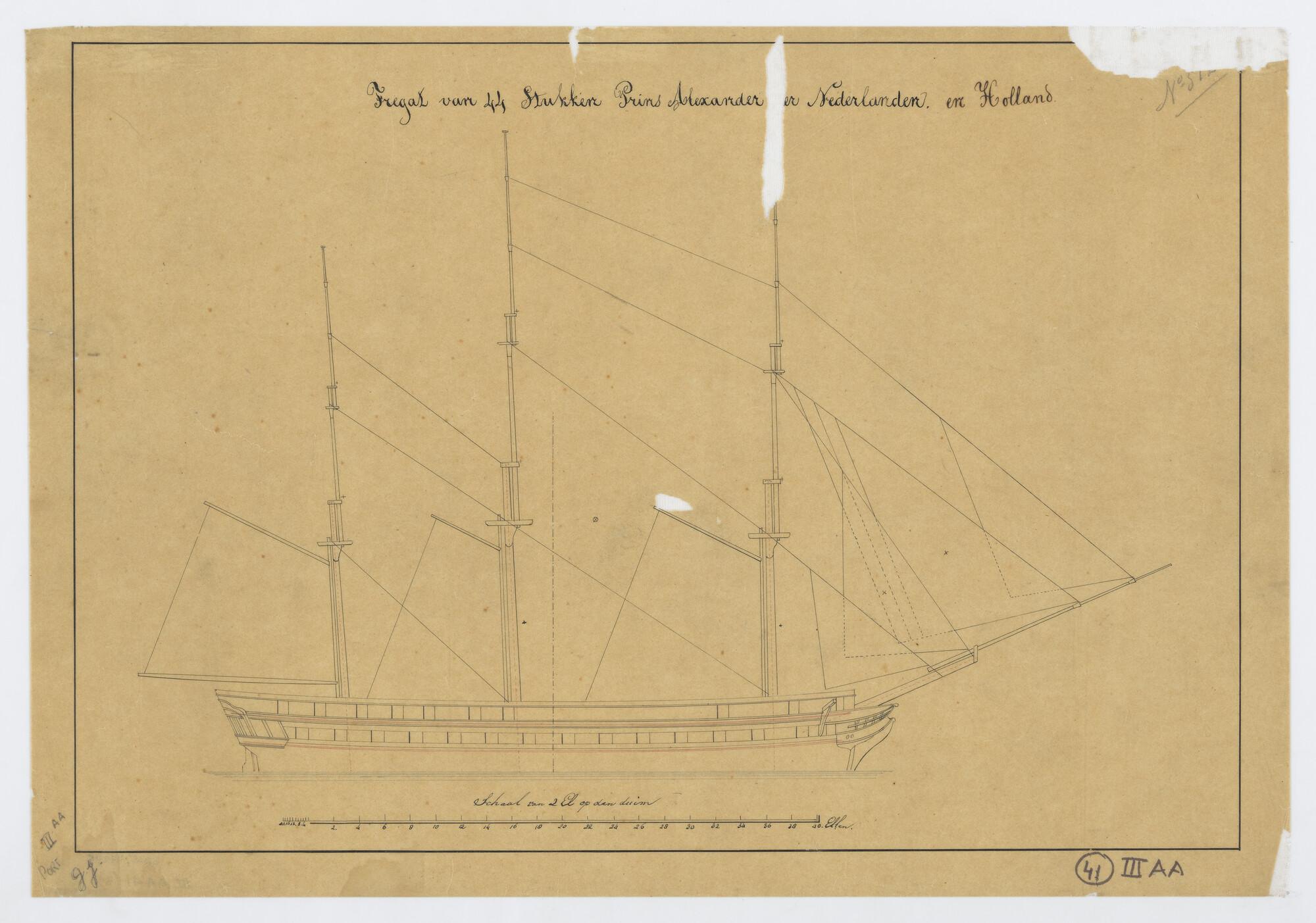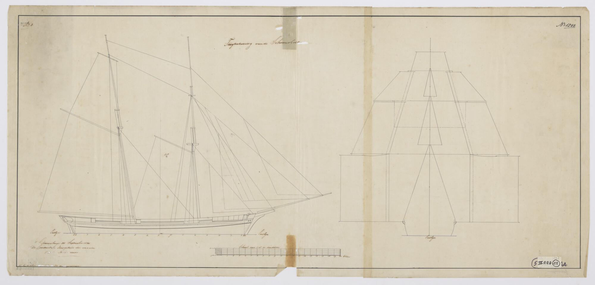 Potloodschets van de bramzaling a/b fregat Z.M. De R...