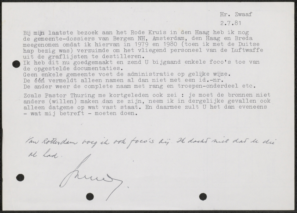 Aantekeningen van dhr. Zwaaf op 2 juli 1981