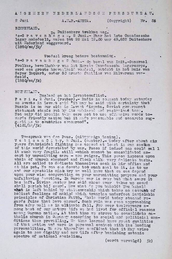 Algemeen Nederlandsch Persbureau, mededelingen, 2 ju...