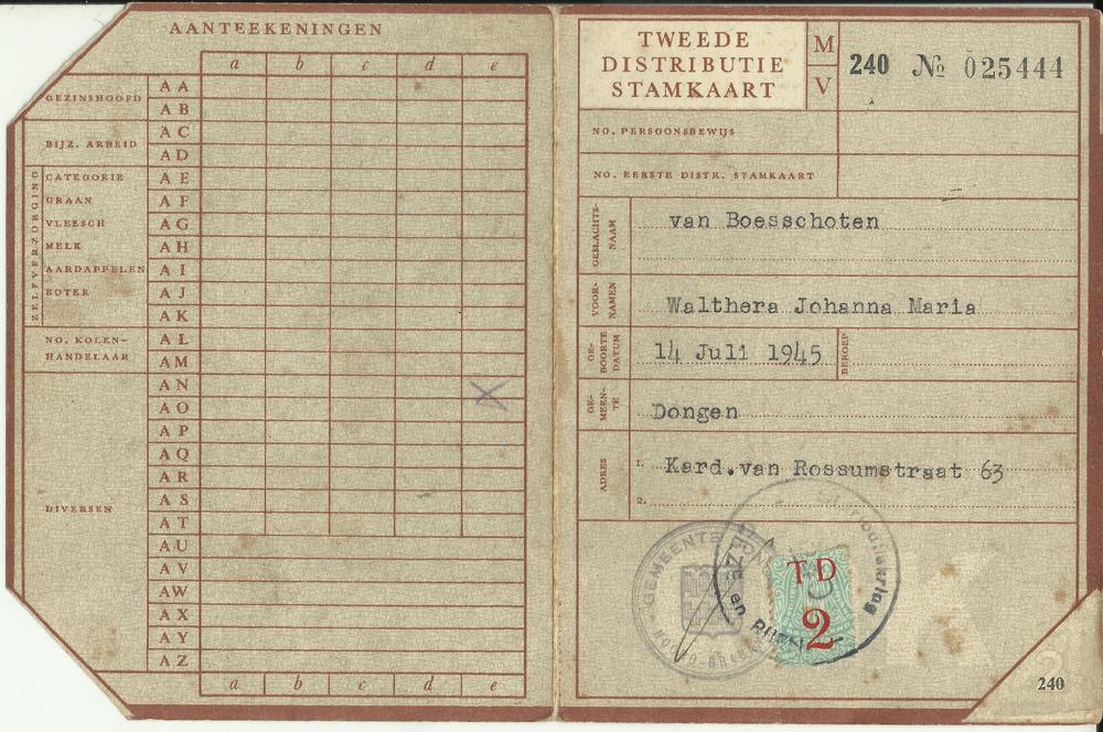 Tweede Distributiestamkaart Walthera van Boesschoten