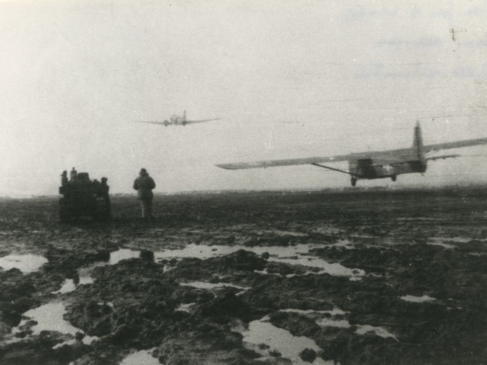 Foto van Amerikaans Waco CG-4A zweefvleigtuig die op...