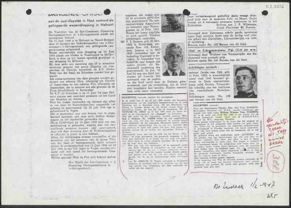 Krantenartikel "De Zwerver" 1/2 1947.