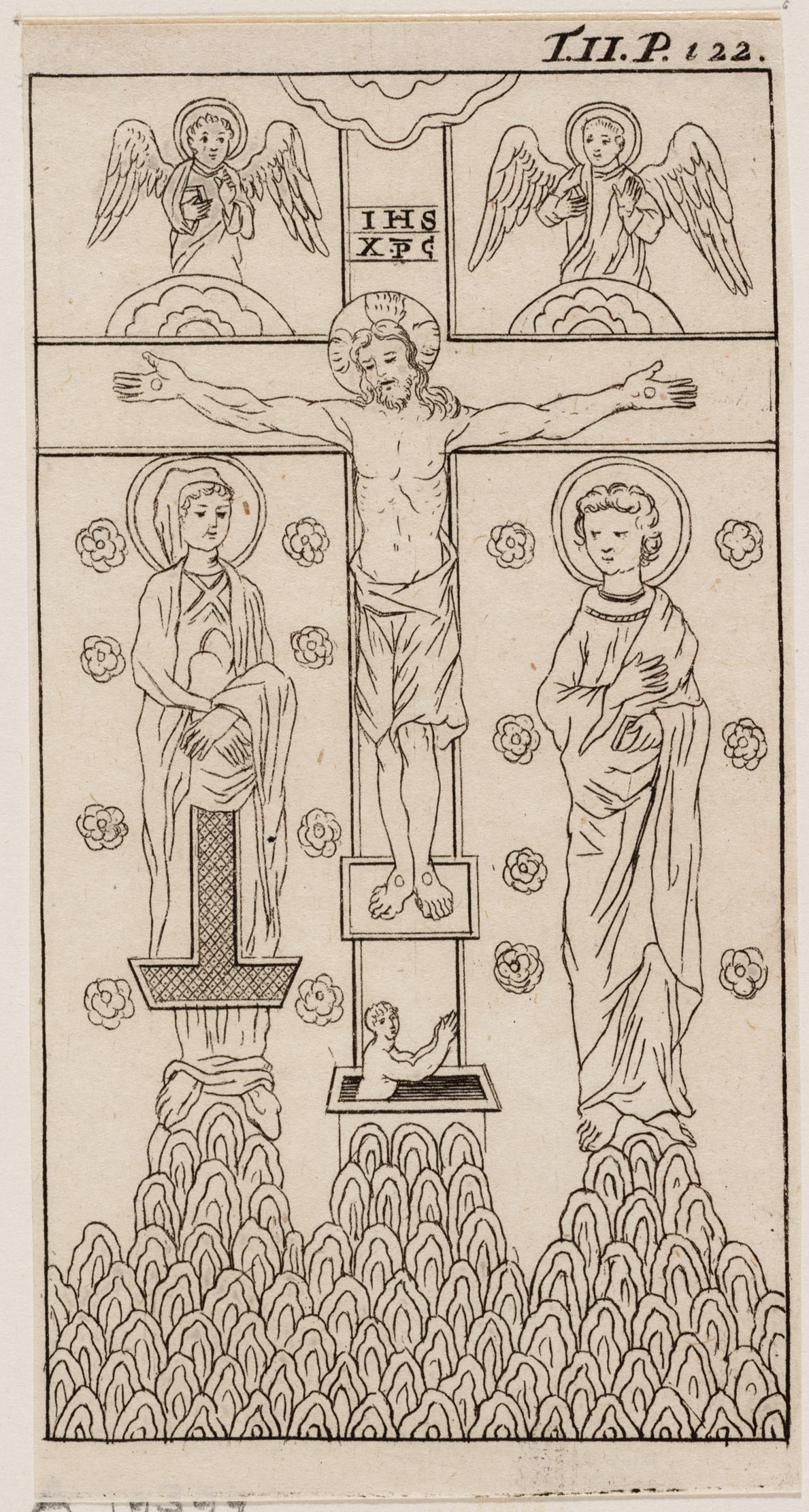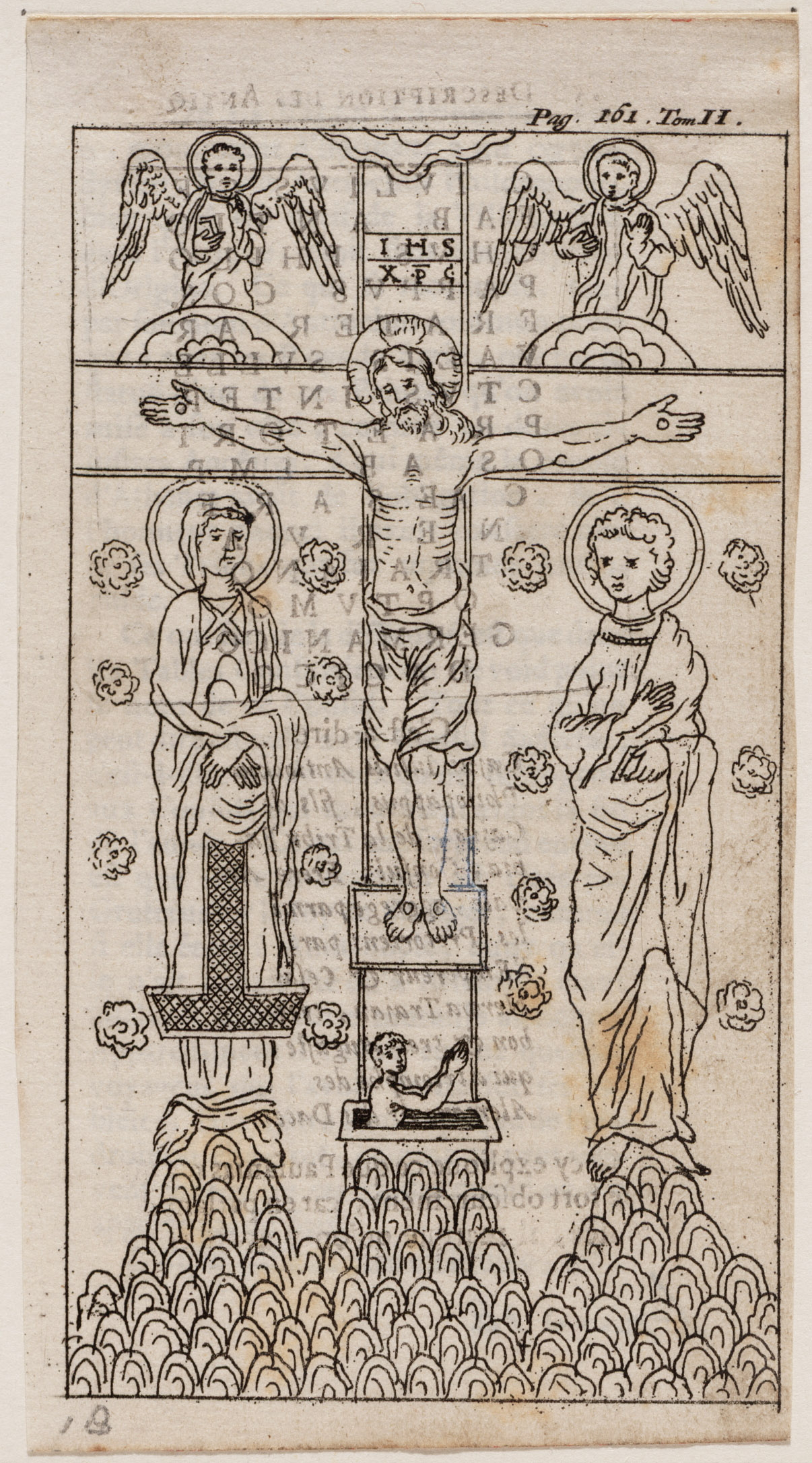 Cartouche met de kruisiging van Christus