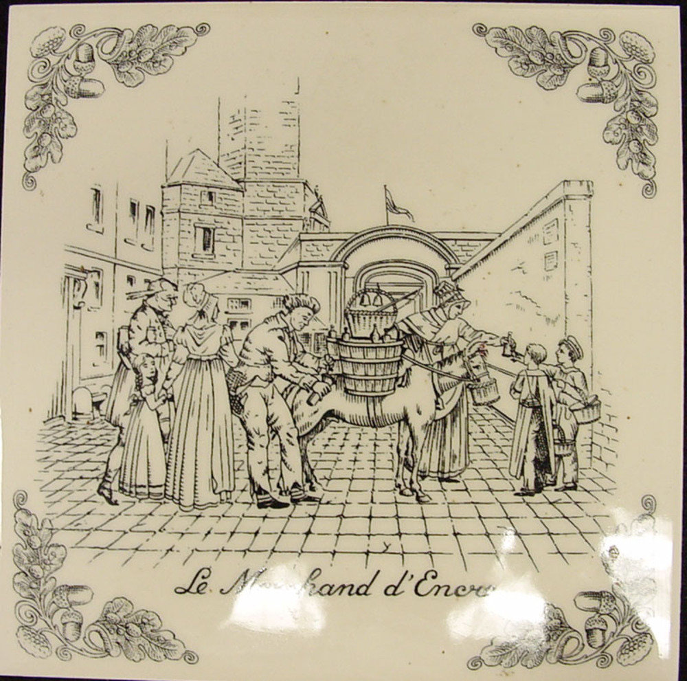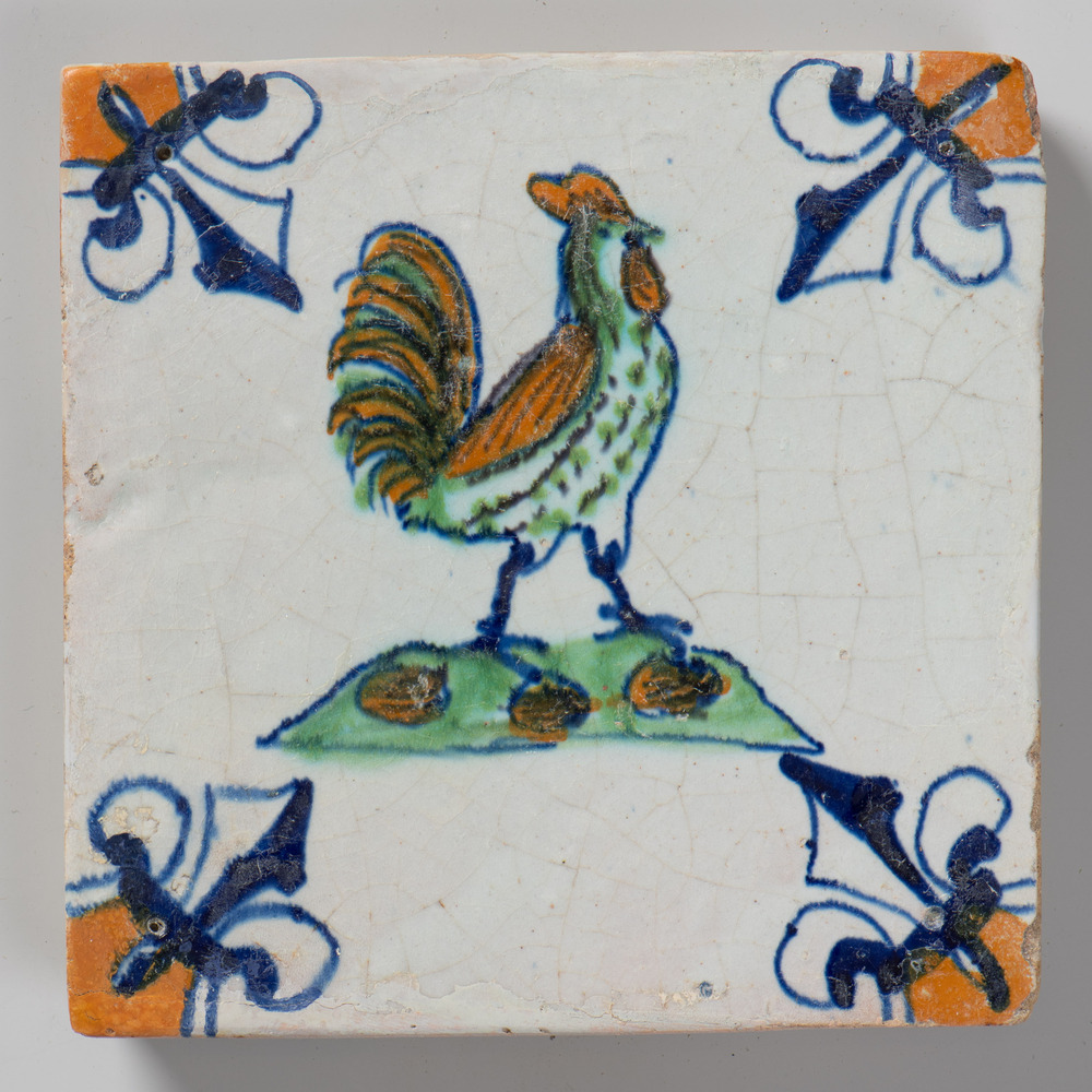tegel van keramiek met tinglazuur, voorstellende: or...