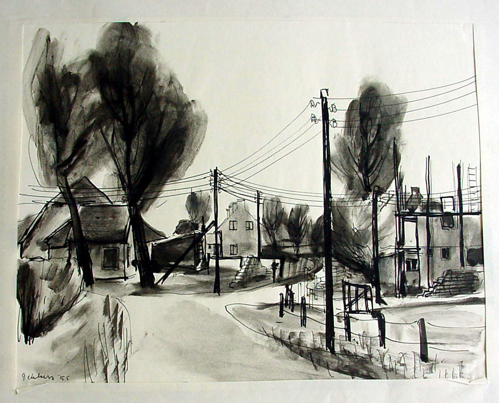 Tekening op papier met Oost-Indische inkt van Braamt...