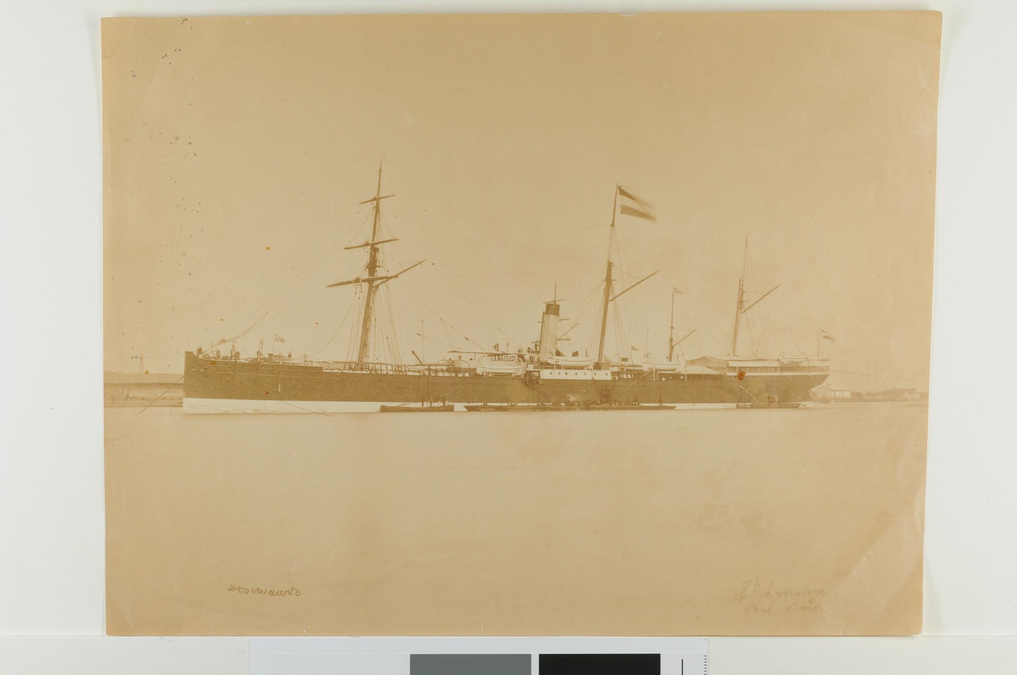 Het mailschip ss. Voorwaarts van de SMN ligt afgemee...