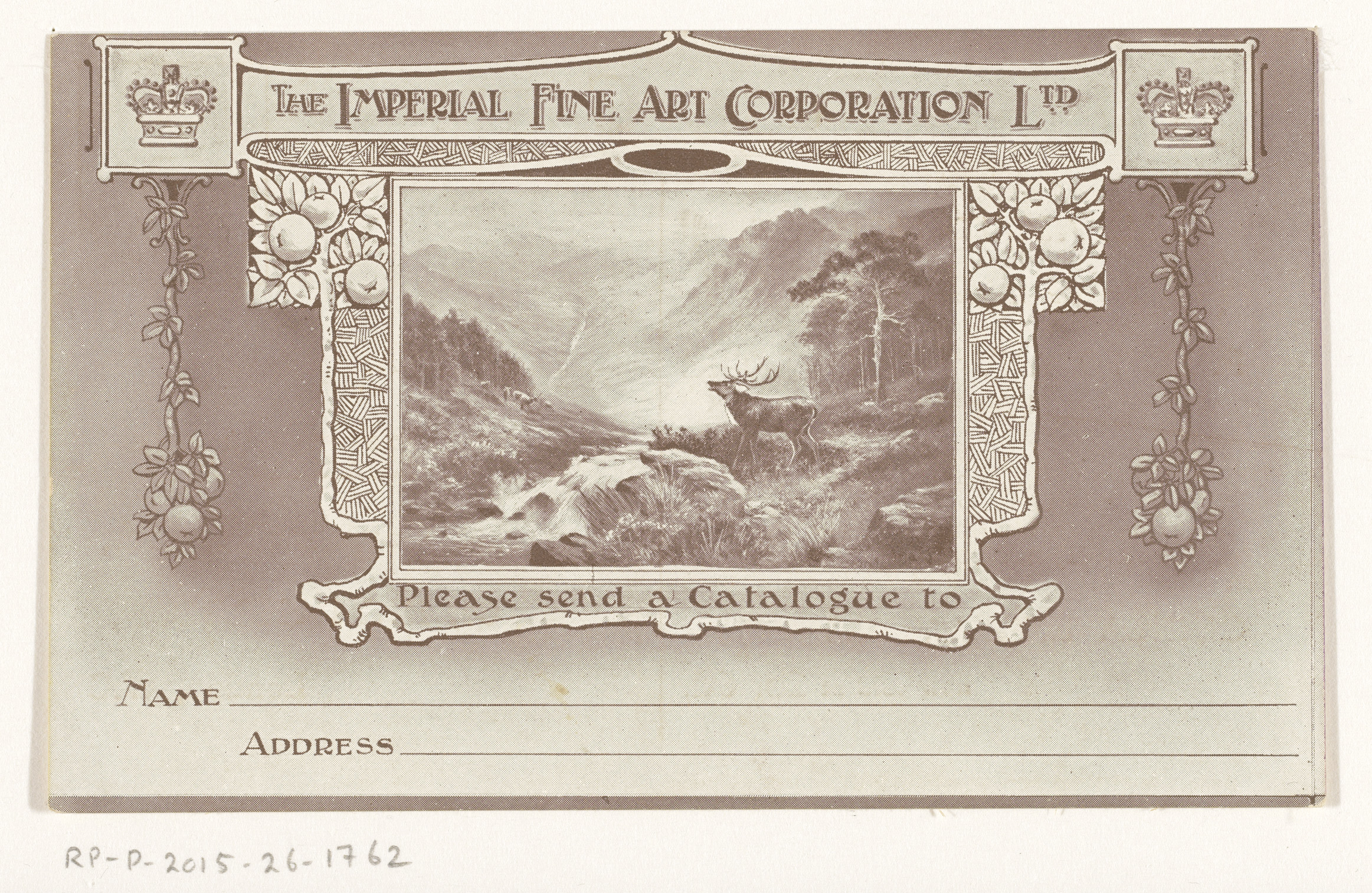 Bestelkaart van The Imperial Art Corporation