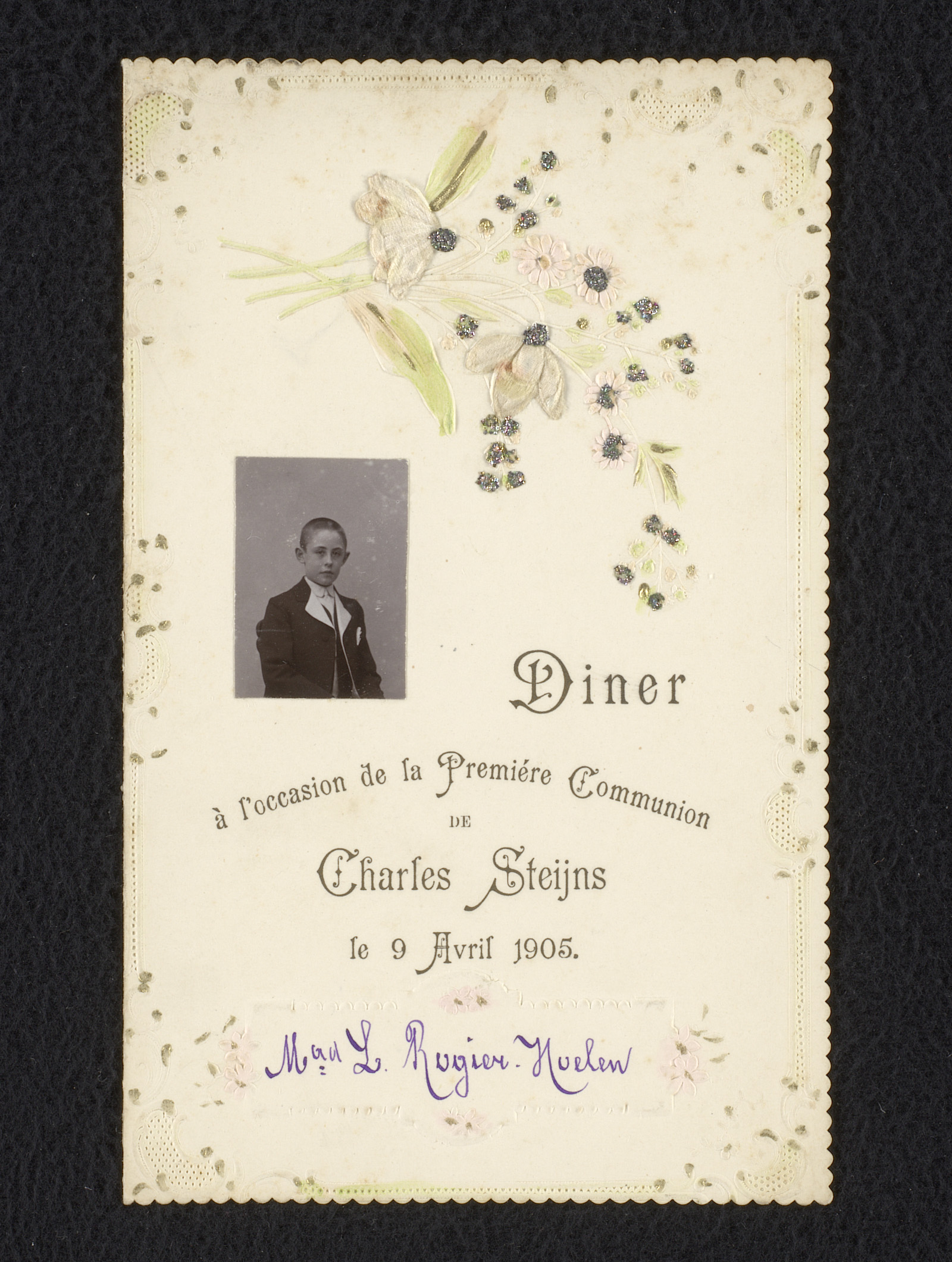 Menukaart voor het diner bij de eerste heilige commu...