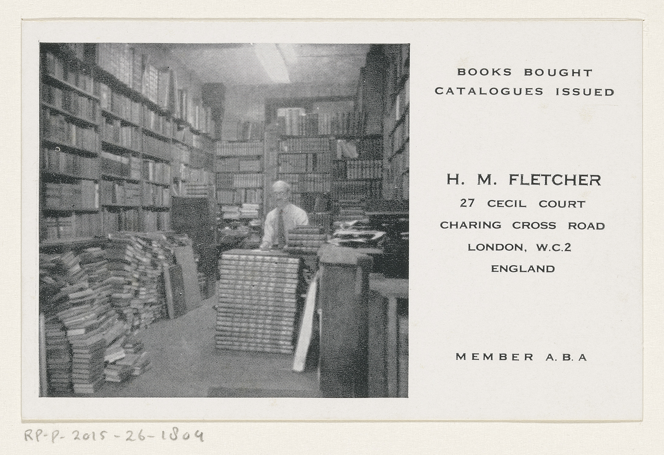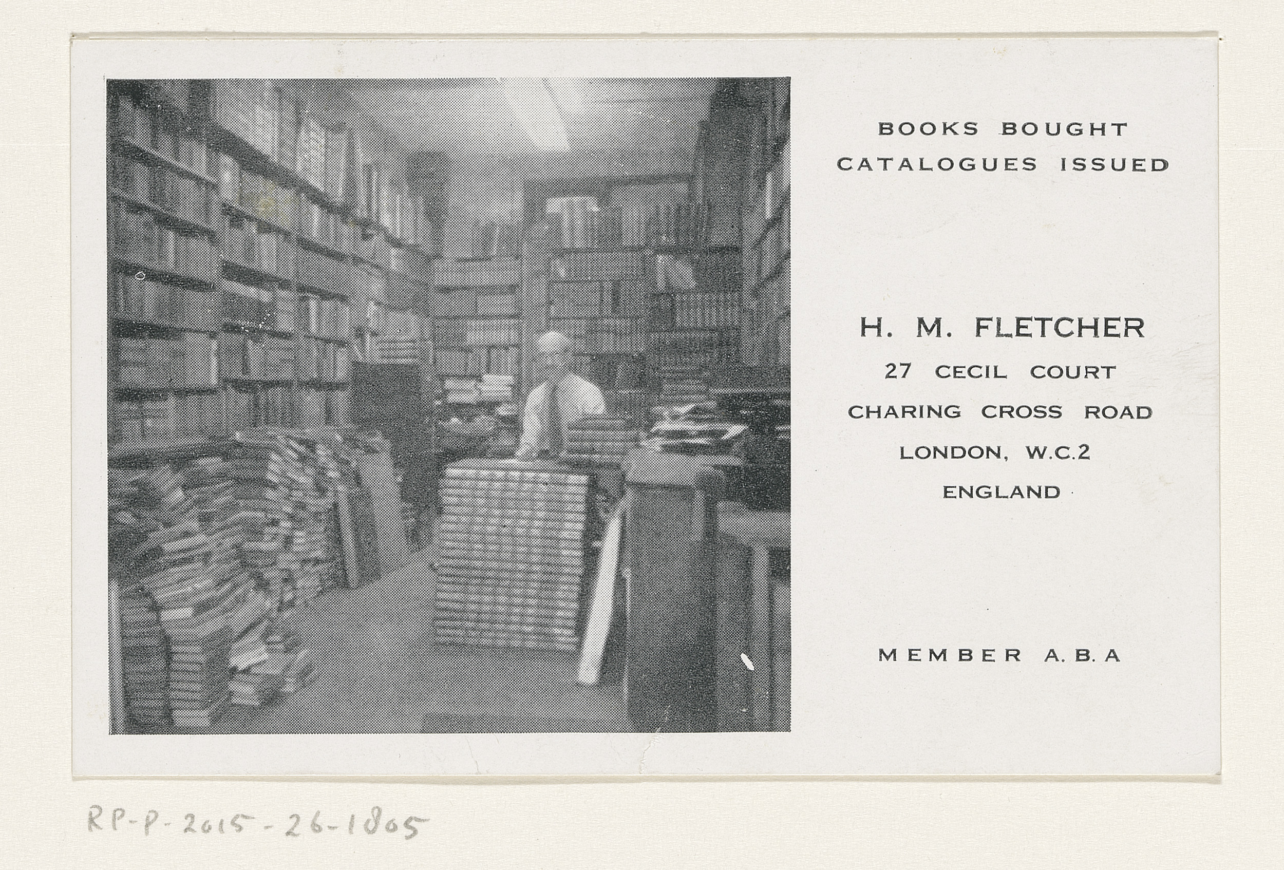 Visitekaartje van H.M. Fletcher, boekhandelaar te Lo...