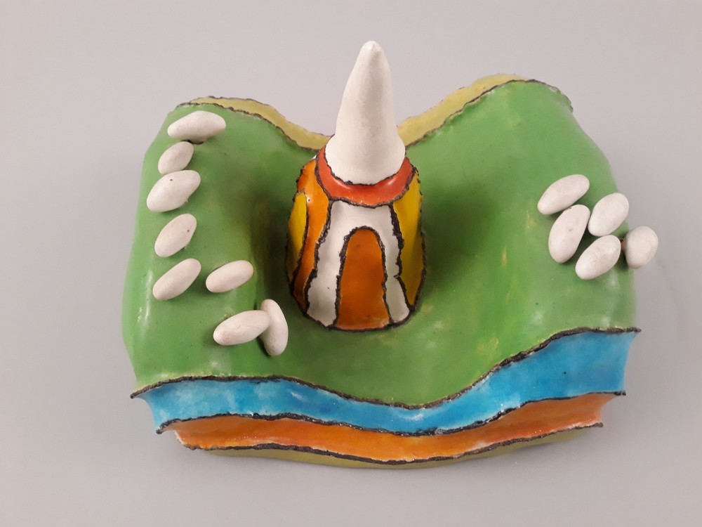 Keramische plastiek 'Kerk in vallei'