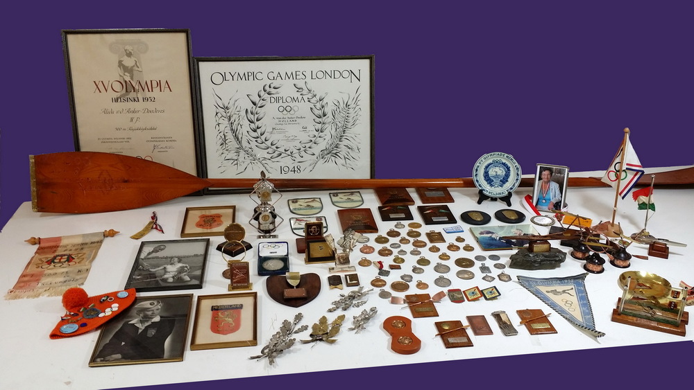 Vitrinekastje met ensemble van 9 NK medailles van Fa...