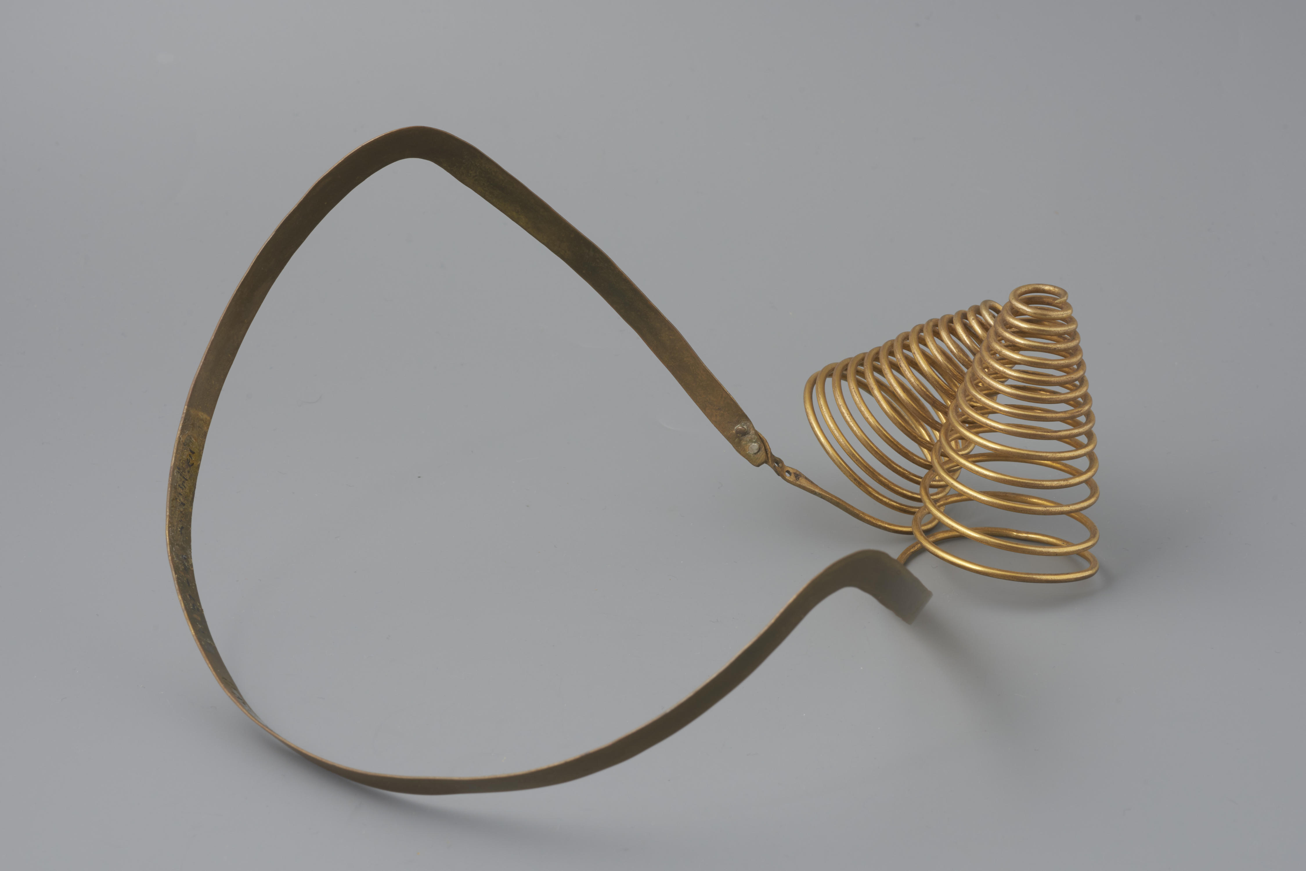 Messing oorijzer met vergulde krullen, Zuid-Hollands...