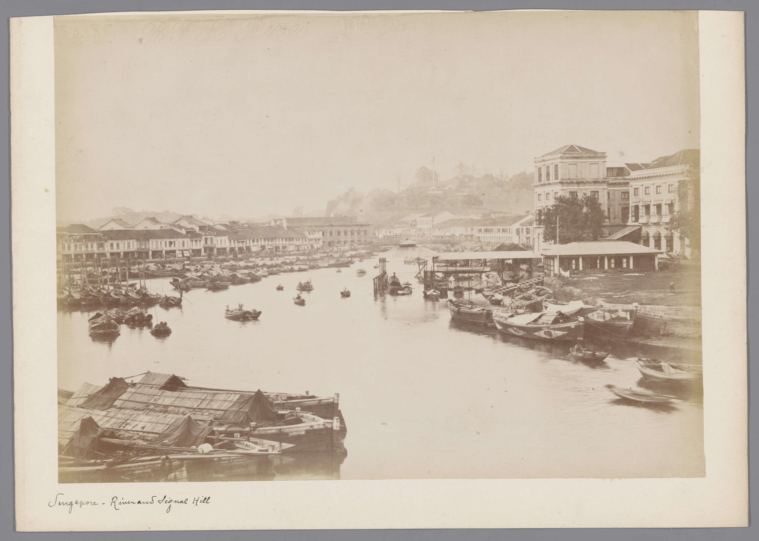 Onbekende vrouw in een riksja voortgetrokken door ee...