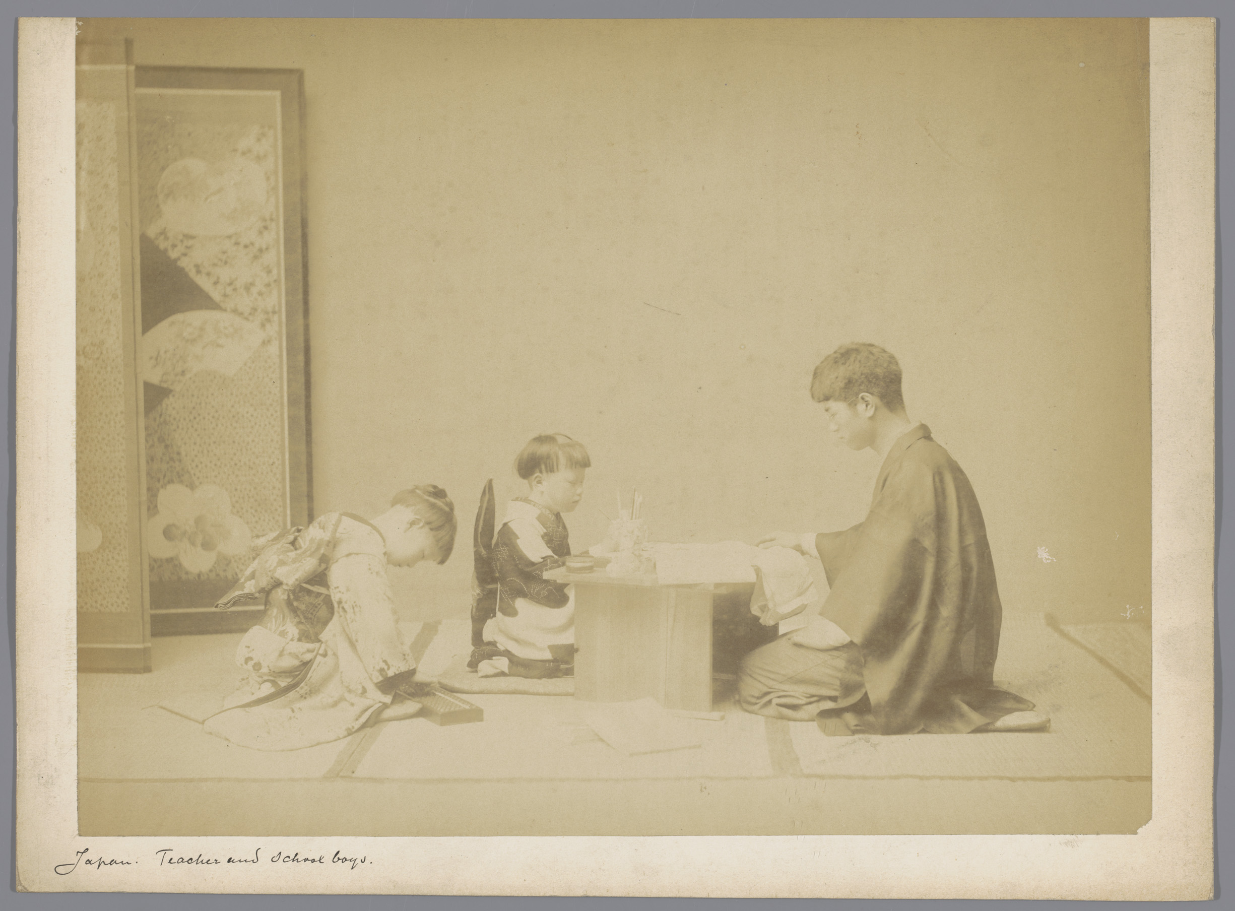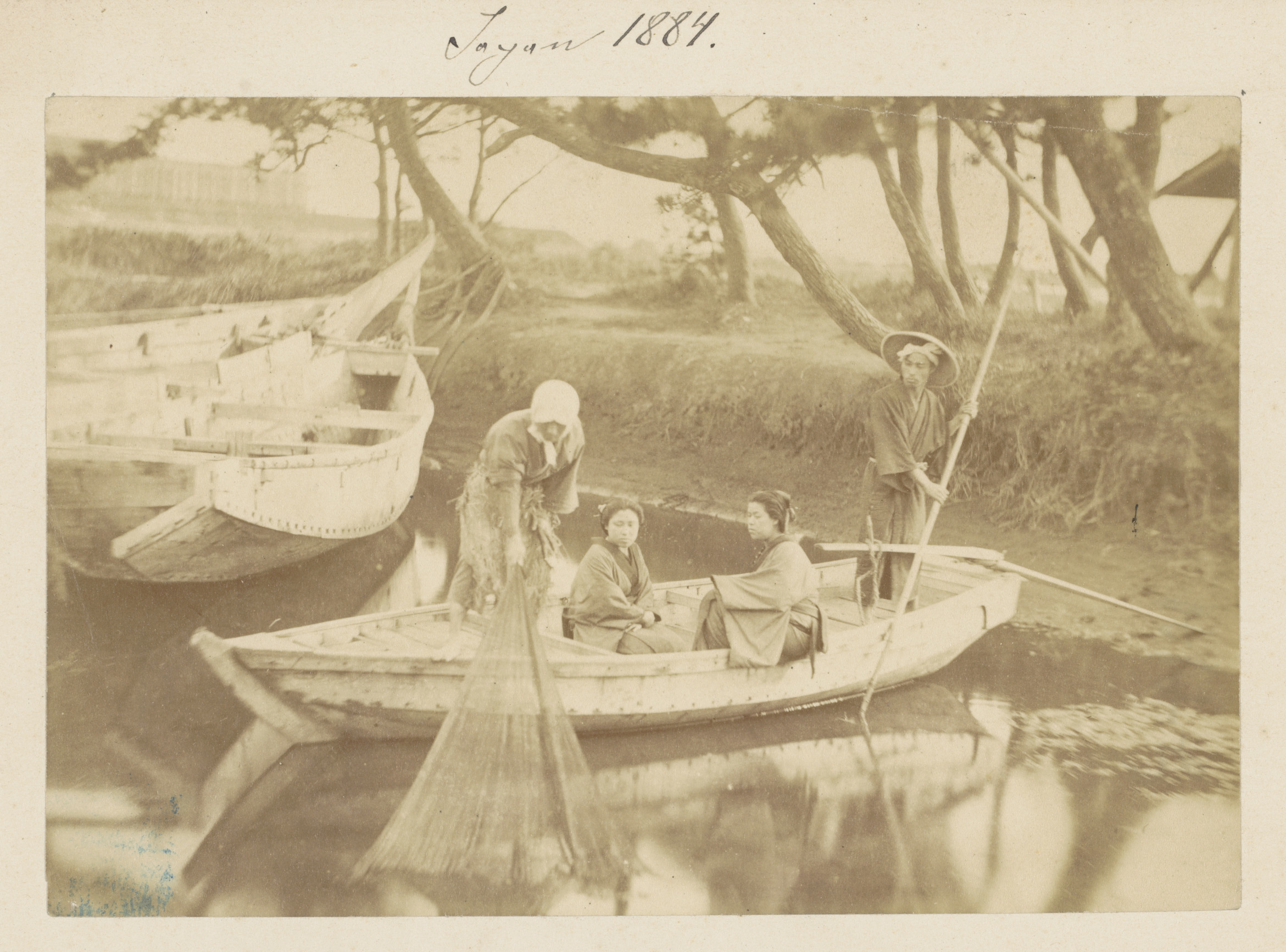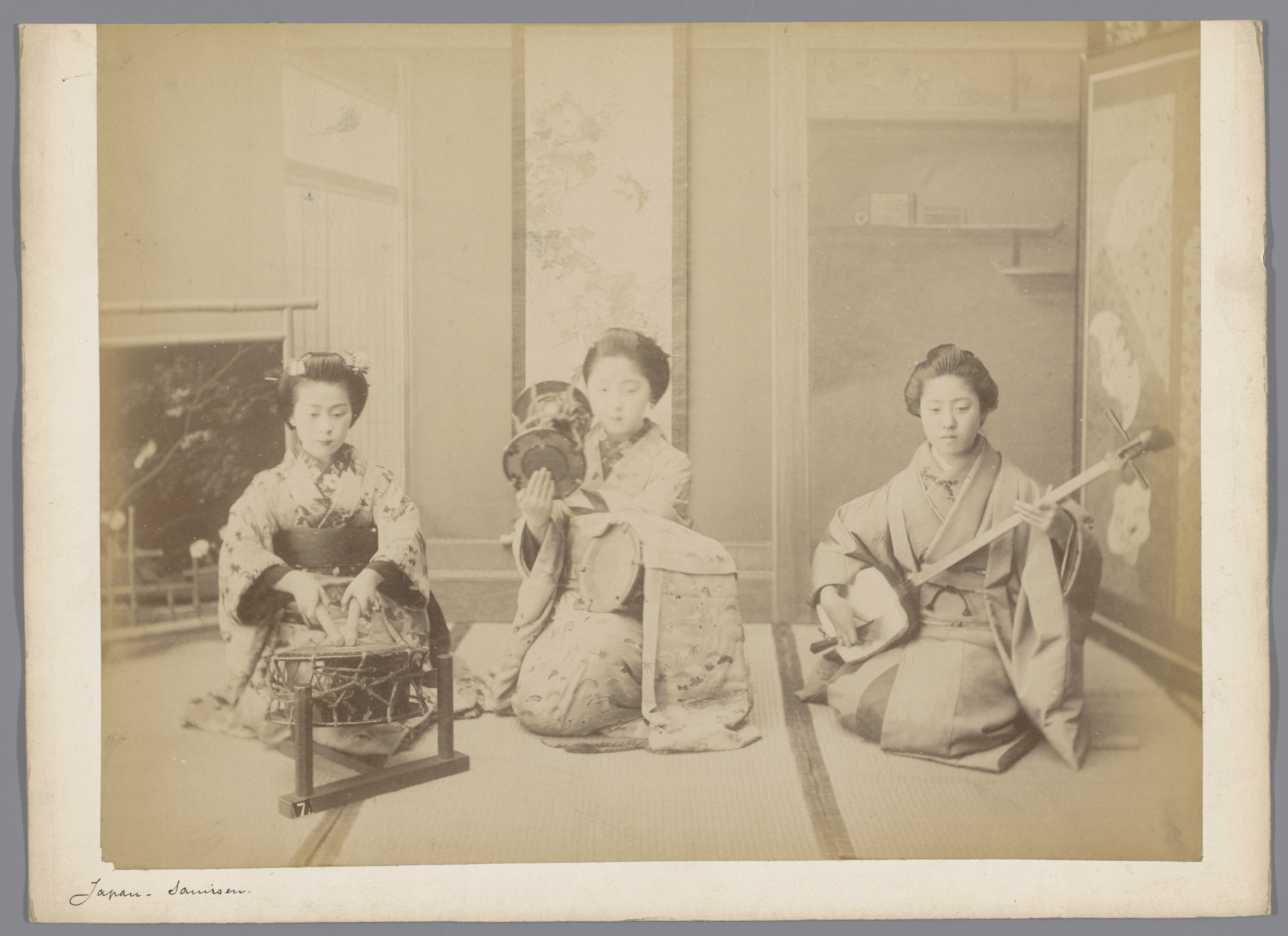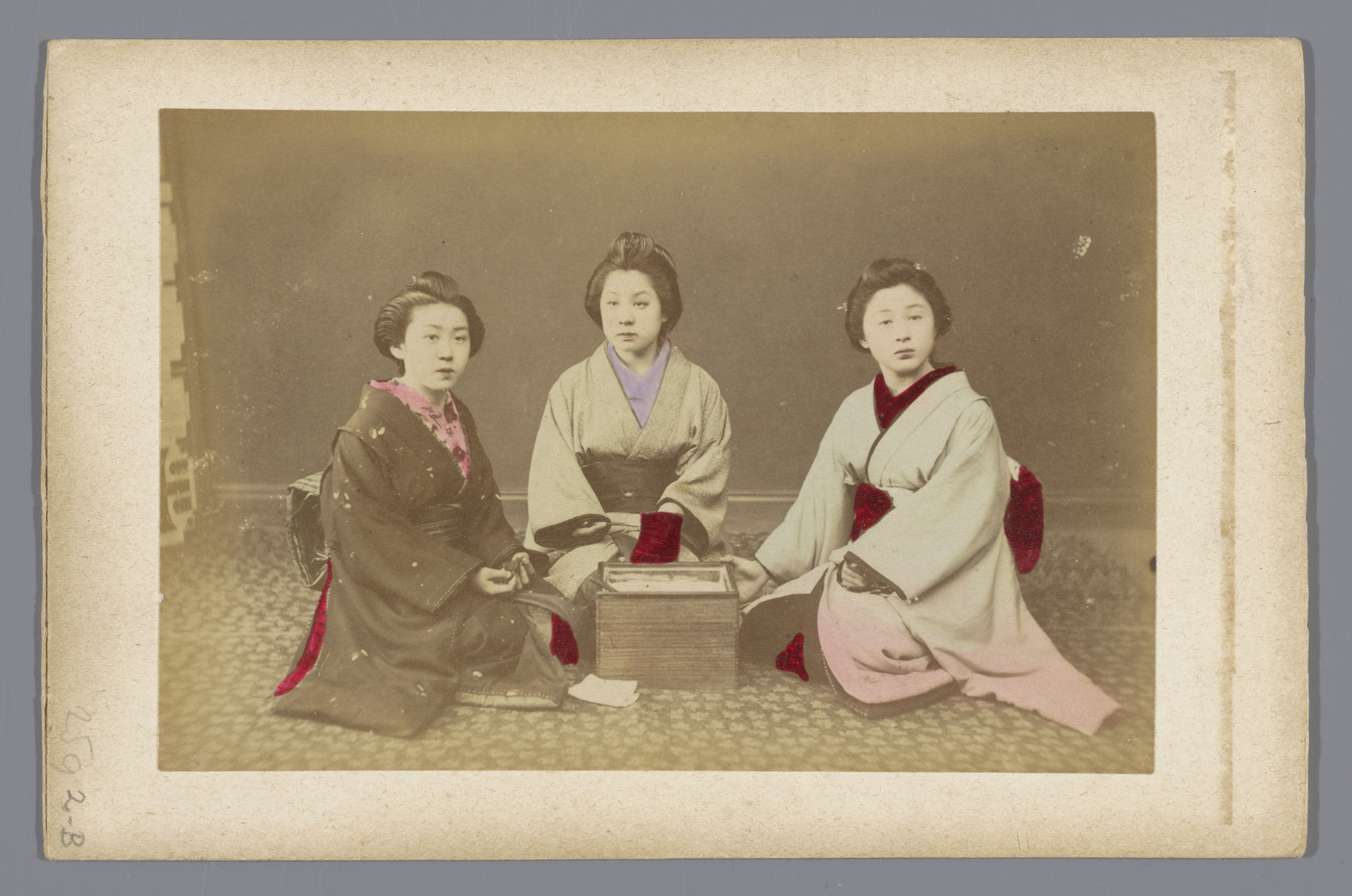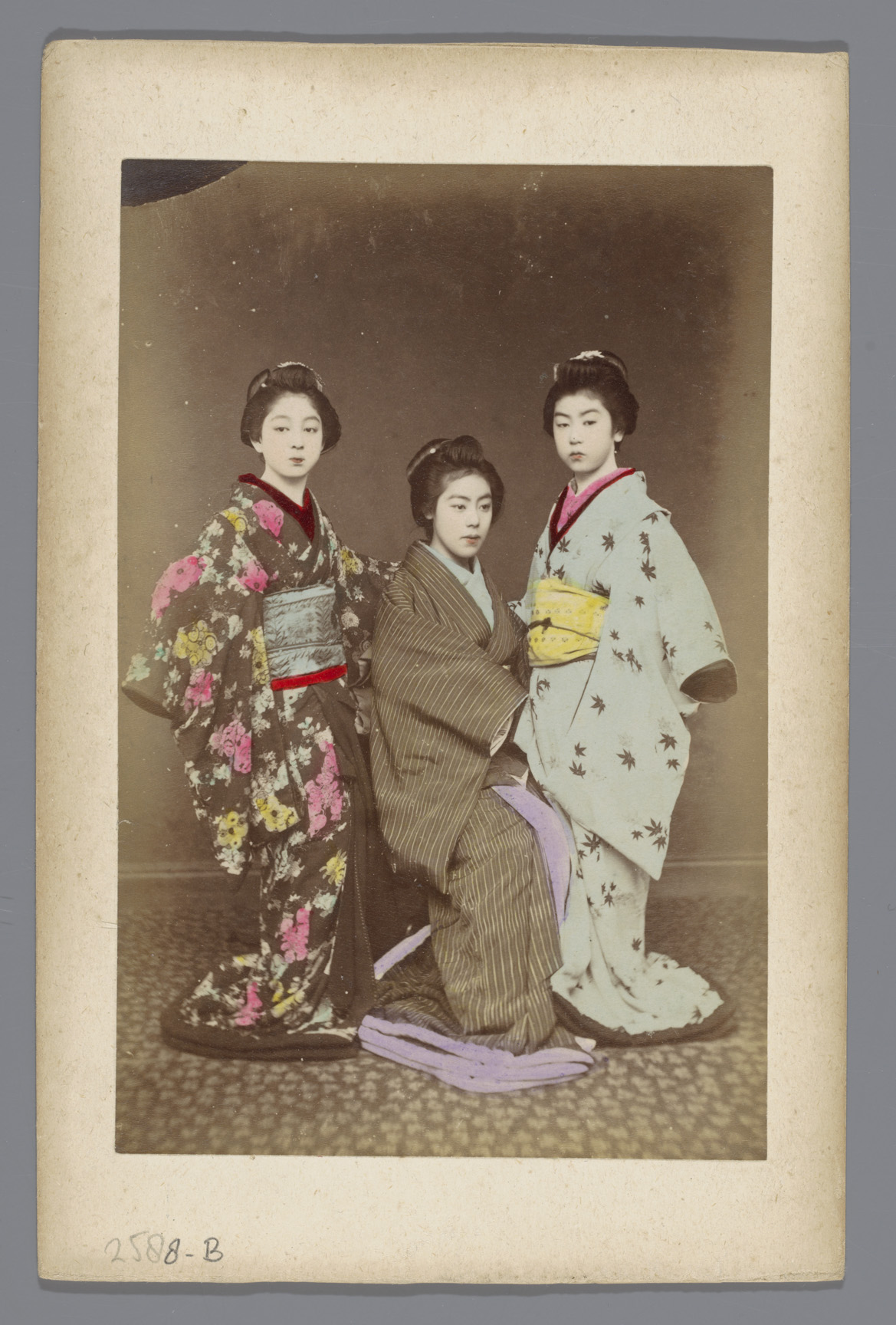 Groepsportret van drie onbekende Japanse vrouwen met...